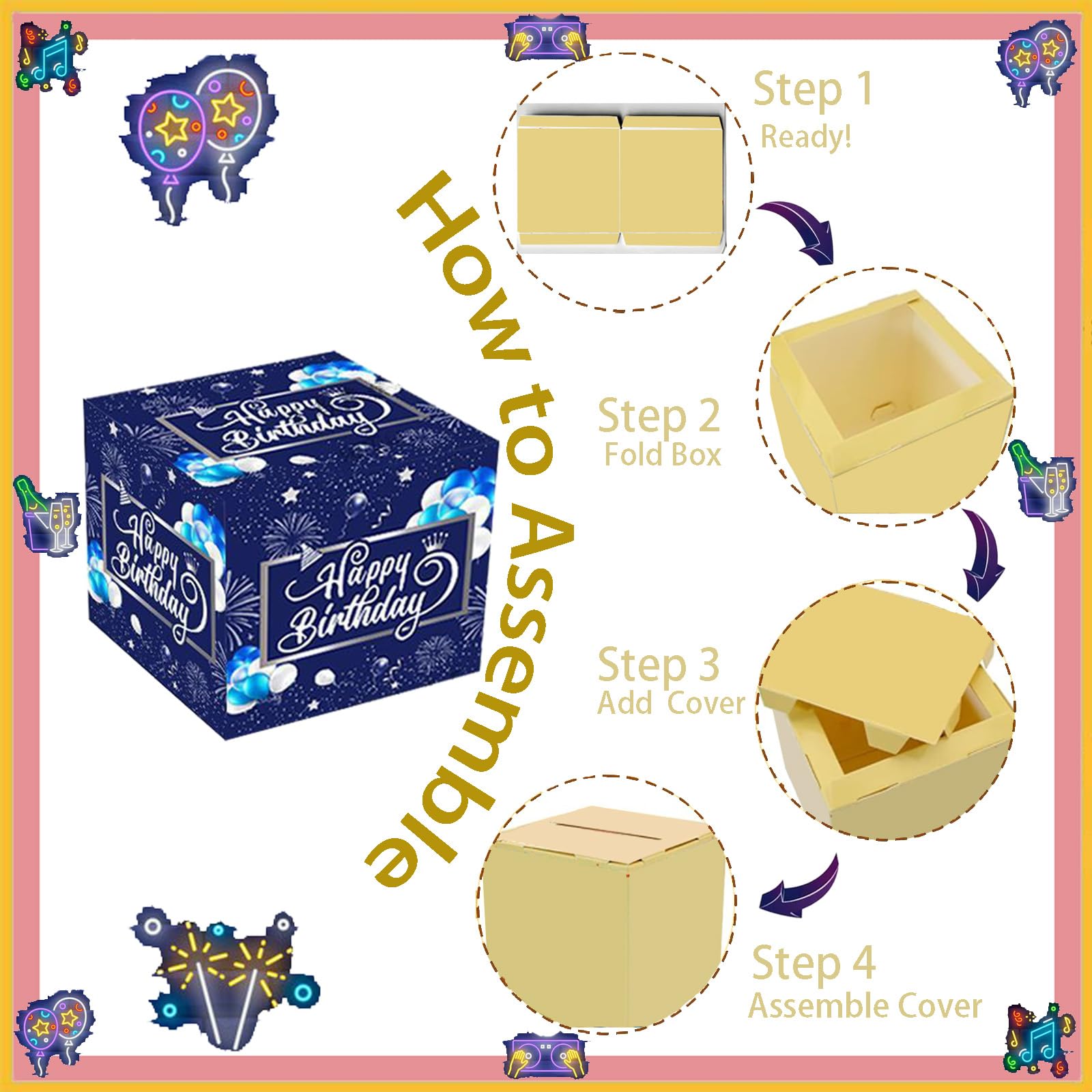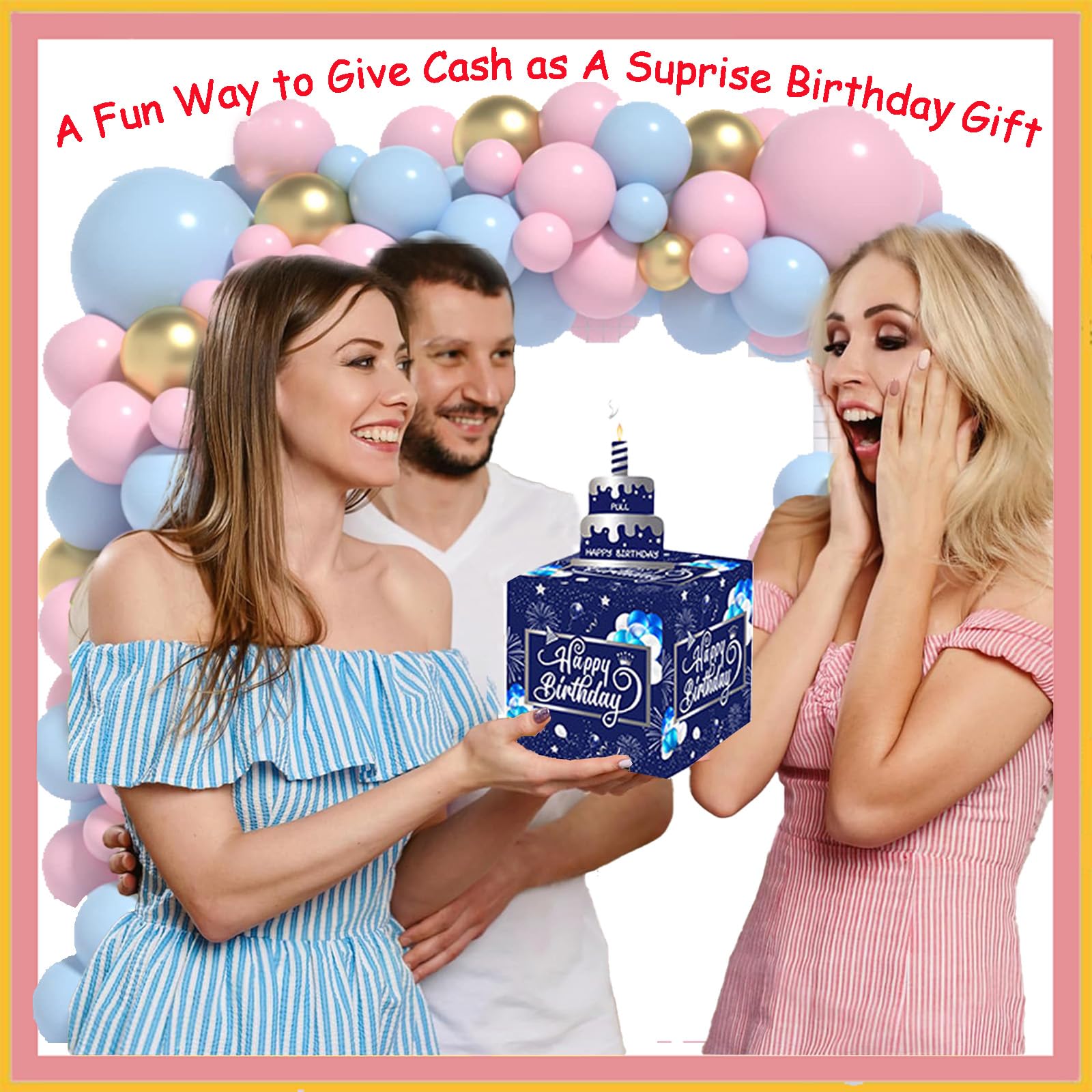 【Various Ocassions Suited】The surprise birthday box explosion is suitable for various of occasions whether it's birthday party,festval or holiday celebrations at any age, capable of expressing good wishes and blessings perfectly by putting inside no matter cash, cards, pictures or any other gifts you can imagine.money roll gift box makes a big suprise and liven up the enoyable atmosphere!