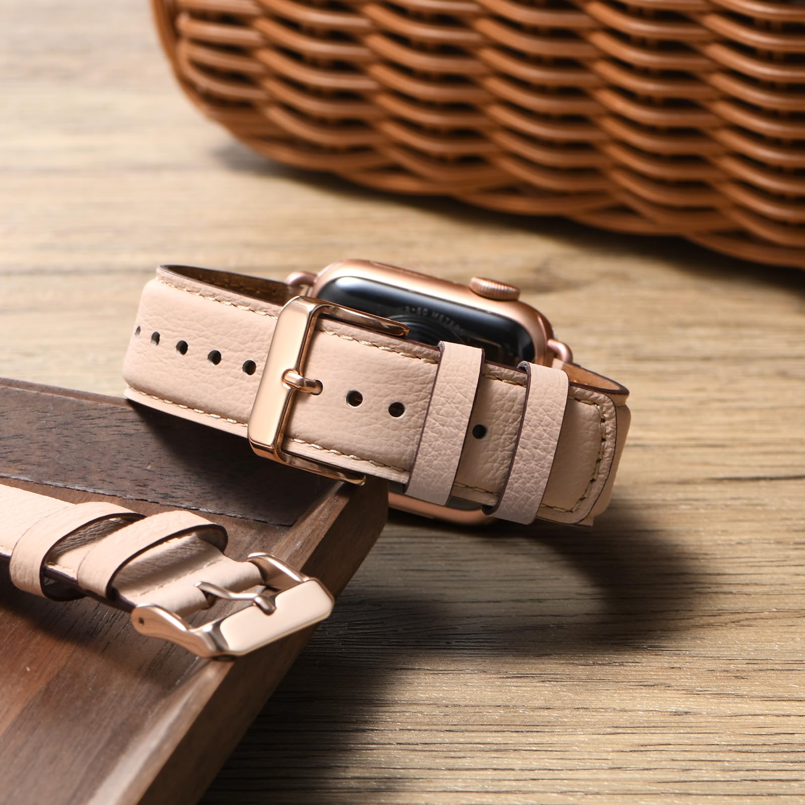 Safe and Sturdy: Our leather apple watch band is built to last, thanks to its high-quality stainless steel buckles and adapters, meticulous stitching, and oil-sealed edges. These features ensure that the band is safe and sturdy, providing long-lasting durability and exceptional quality