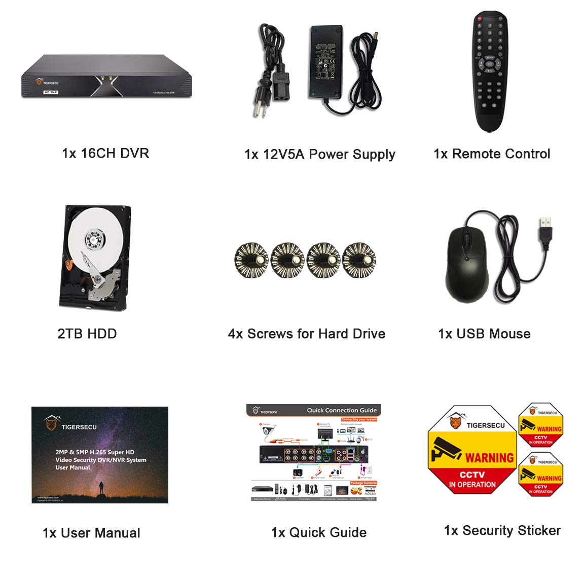 This DVR is compatible with 2MP/5MP HD TVI, AHD, CVI, RS485 PTZ cameras and analog security cameras. For optimal performance, use this TIGERSECU DVR with TIGERSECU security cameras.