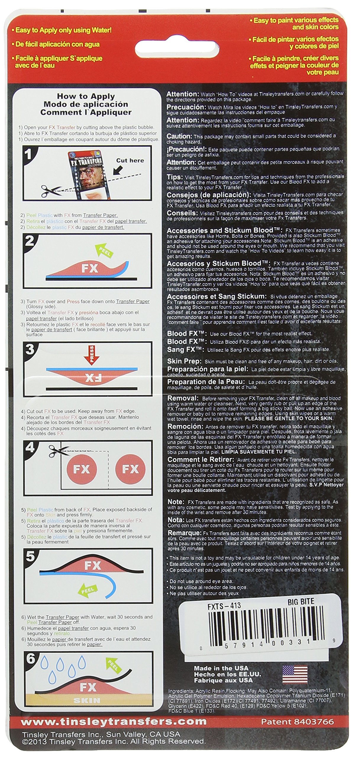 Description Our 3D FX Transfer prosthetics are the revolutionary technology that garnered Tinsley Transfers an Academy Award for Technical Achievement. They are 100-percent latex free and easy to apply using only water. No adhesives necessary and they look absolutely real. Get the scariest looks from movie and television's industry leader in makeup effects.