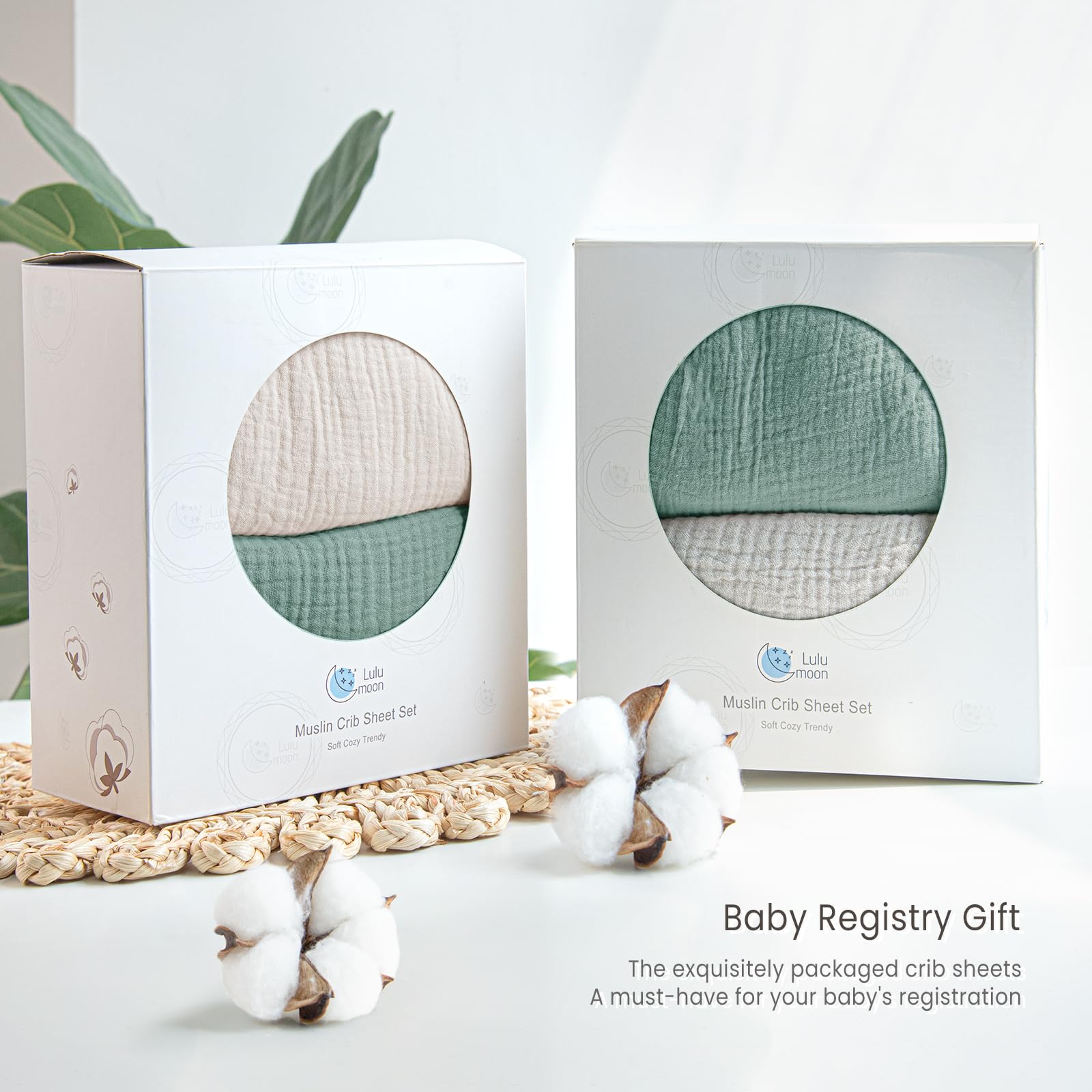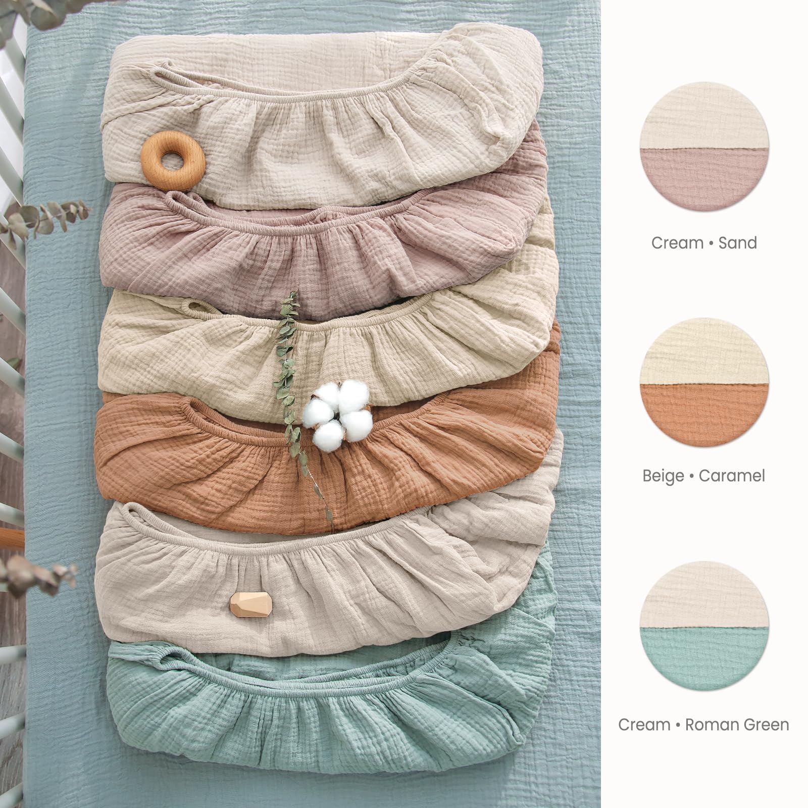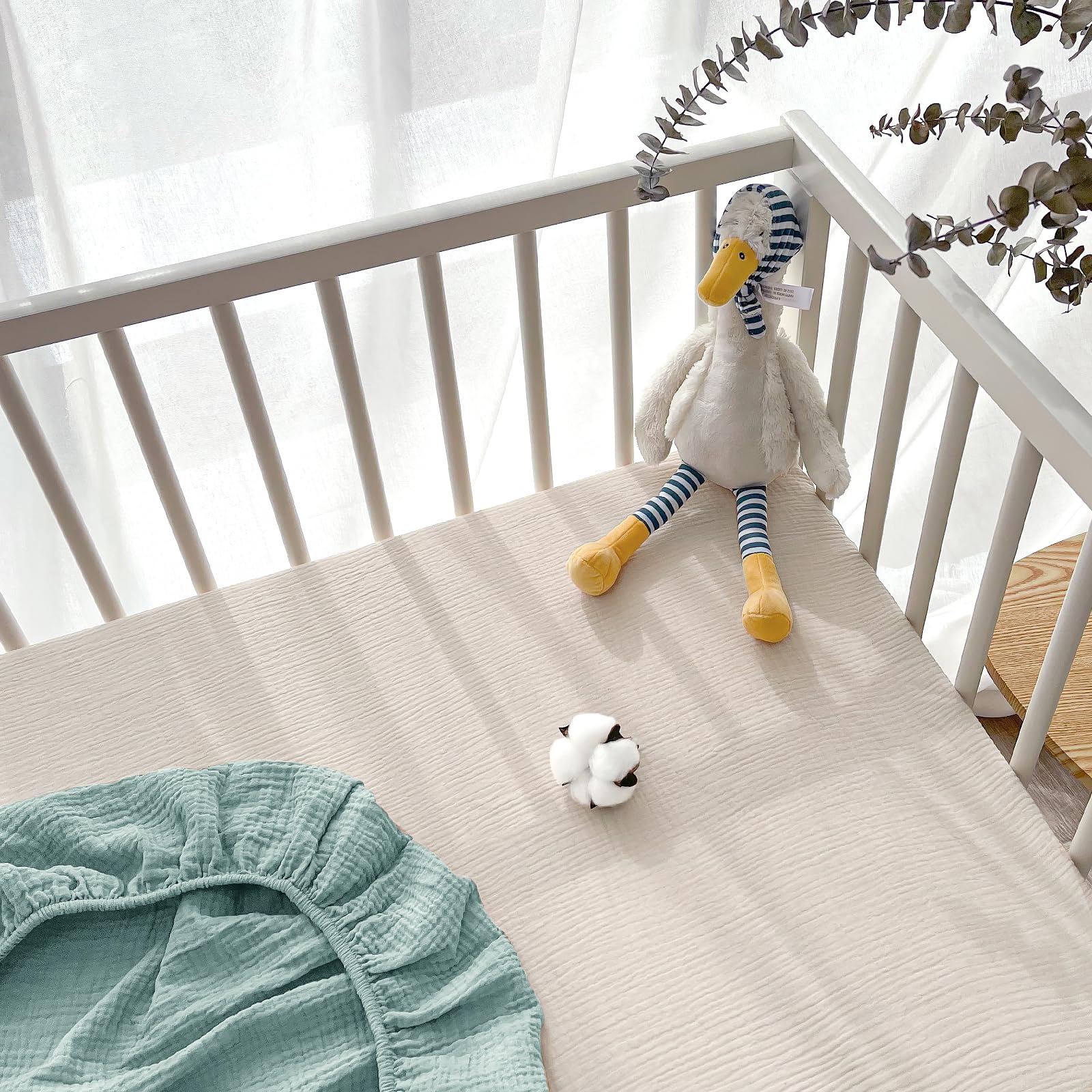 SOFT AND COMFORTABLE - The crib sheets is made of 100% muslin cotton, super soft, comfortable, and won't irritate your baby's delicate skin. Lightweight, breathable muslin crib sheets stay cool even in warm weather.