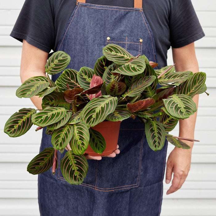 MEET MARANTA RED PRAYER! It is a evergreen perennial native to Central and South America. This plant flat oval leaves with a line pattern that runs symmetrically across the leaves.
