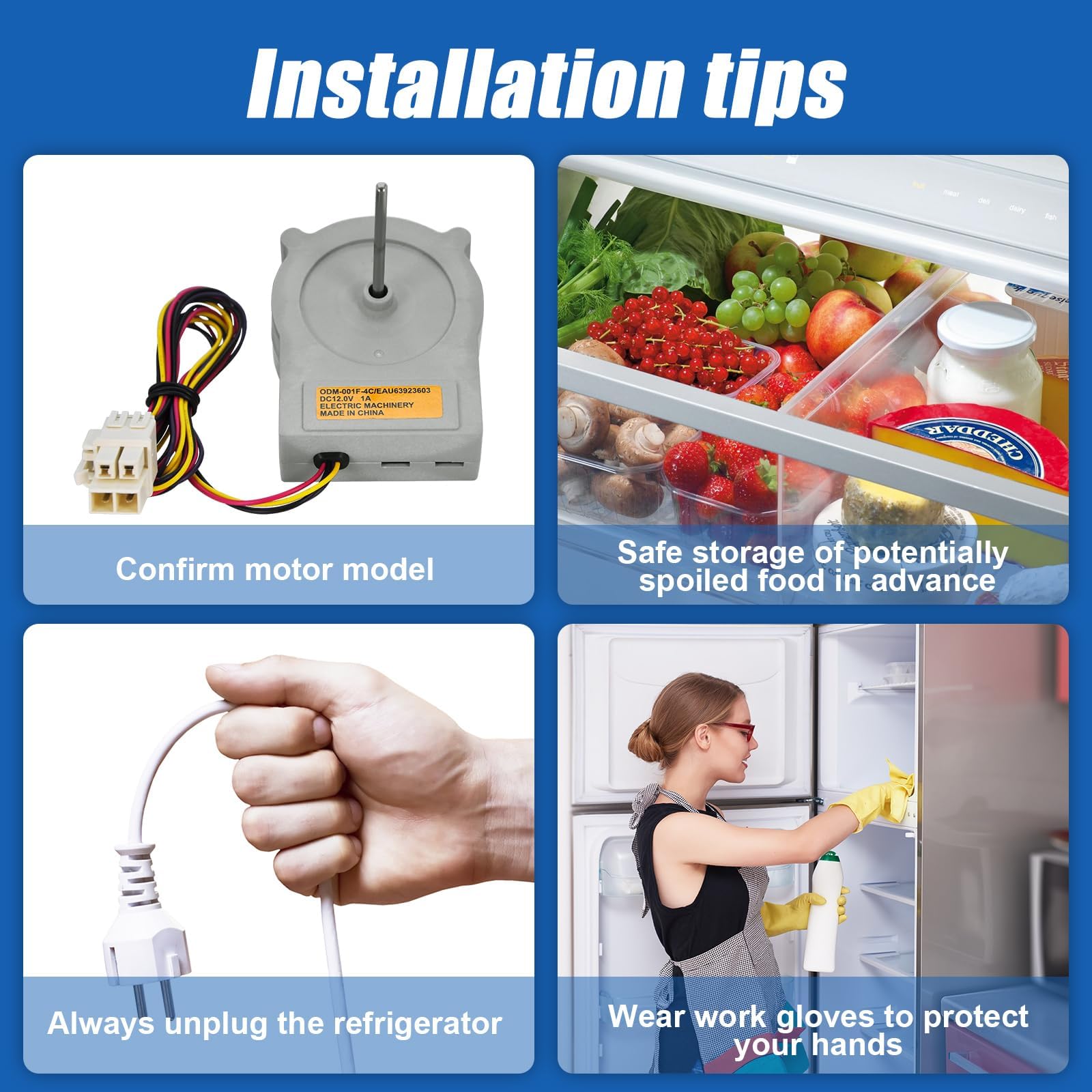 Installation: Before installing this part, please make sure to unplug the refrigerator, wear work gloves to protect your hands, and safely store potentially spoiled food in advance