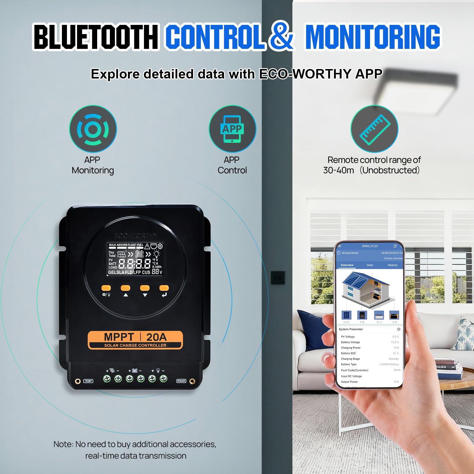 [ Remote Monitoring ] Monitor and adjust settings anytime by APP, Bluetooth from up to 40 meters away — no extra module needed. The built-in high-resolution LCD clearly shows system status and alerts, making installation and daily use quick and simple