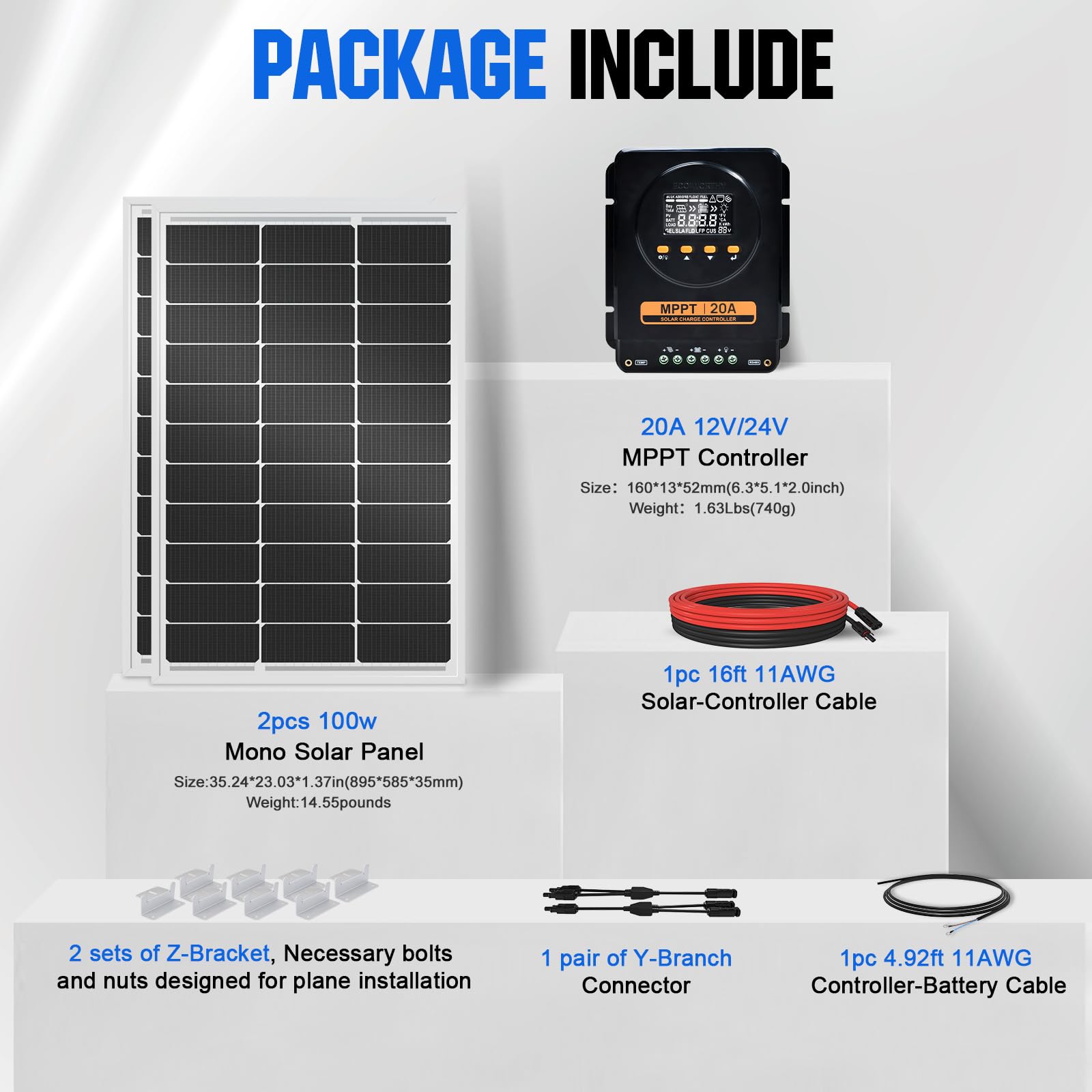[ Wide Application ] Daily Output 800wh/day under 4 hours full sunshine condition. Perfect for RV, Caravan, Marine, Camper, Electric scooter, Golf Carts, Power wheels, Trolling motor, Tool trailer, Backup power supply for cabin shed home etc