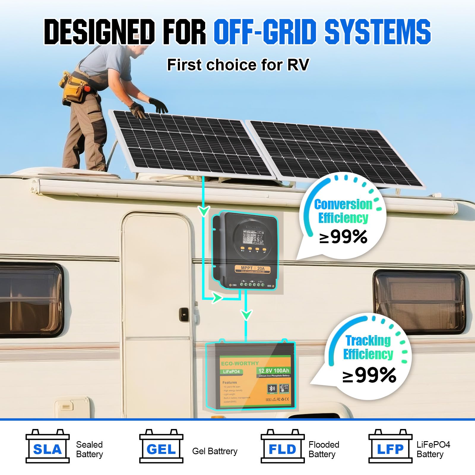 [ 99% Efficiency ] Maximize your solar energy with 99% efficient MPPT technology - 40% better than traditional controllers. It smartly delivers full power to your battery while protecting it from overcharging and overdischarging