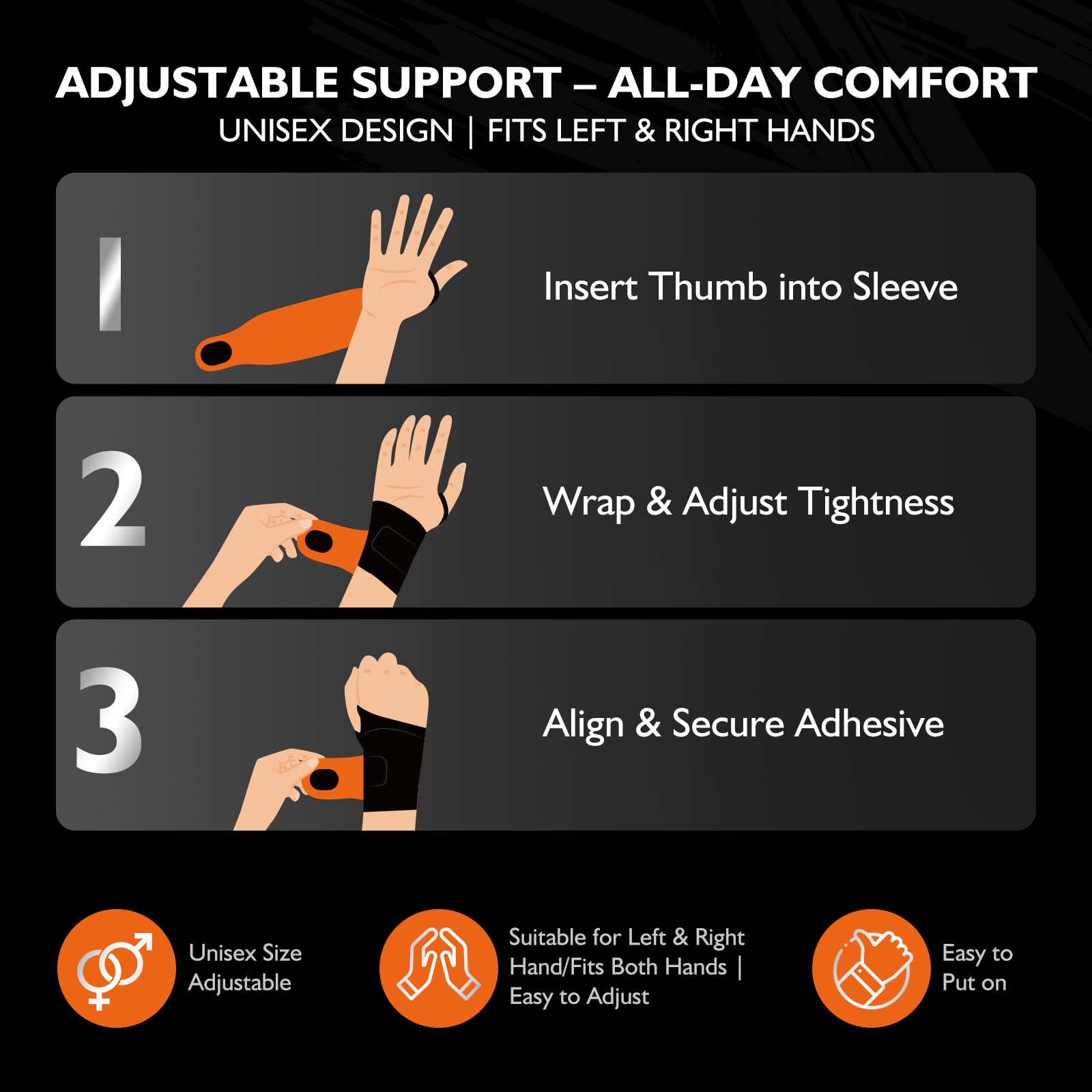 Suitable for a Wide Range of People Our flexible & thin wrist wraps provides all-day comfort & stable night support, whether you're women, men, golfers, tennis players, workers, electricians, plumbers, labourers, and motorcycle riders, or into sports, gym workouts, weightlifting, bowling, fitness training, typing, or daily chores