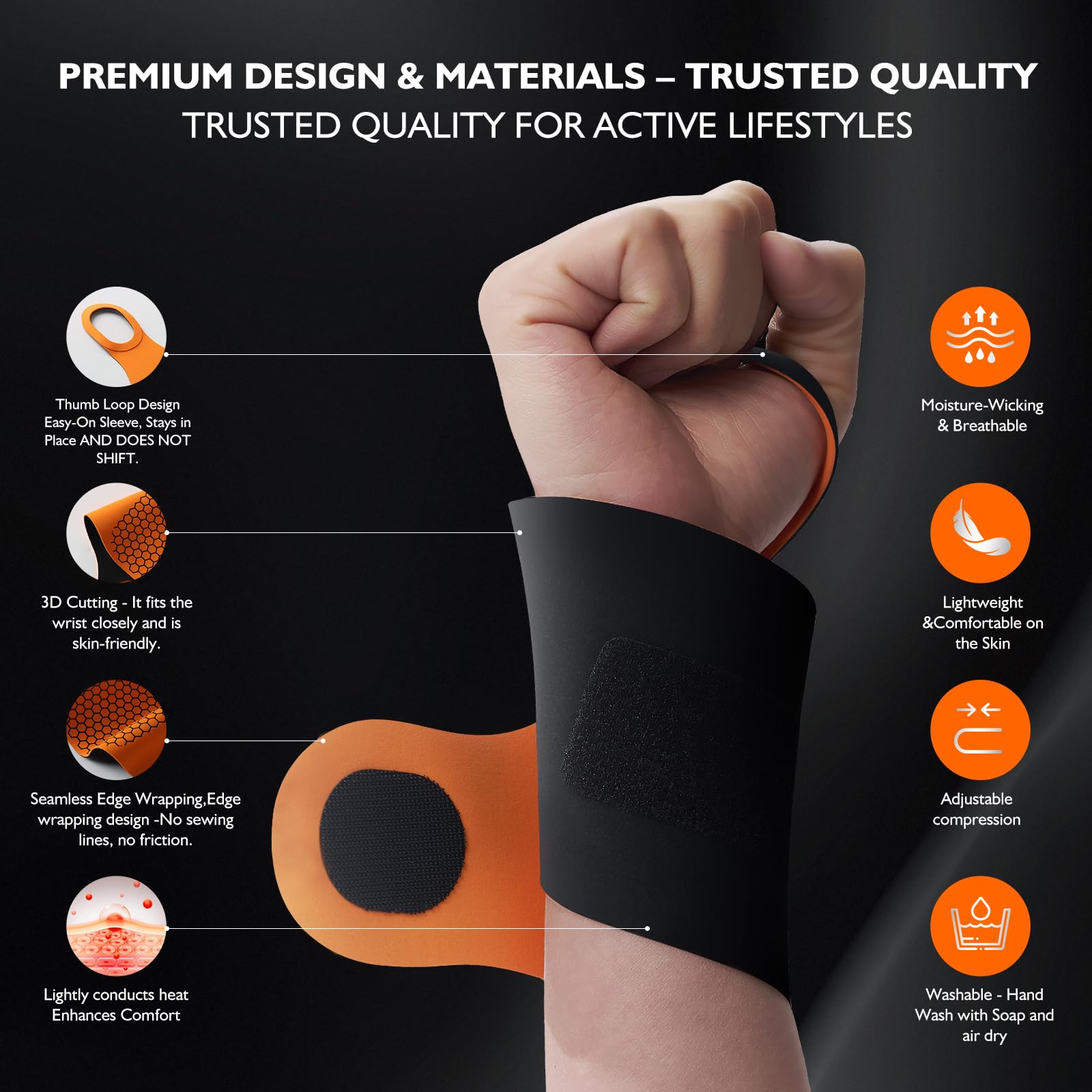 Breathable, Moisture-Wicking & Eco-Friendly The moisture-absorbing, anti-static fabric keeps your wrist cool and dry, preventing discomfort from sweat buildup. Washable and durable, DR.SPRING wrist brace & protector offers long-lasting use while reducing material waste, making it a sustainable choice.
