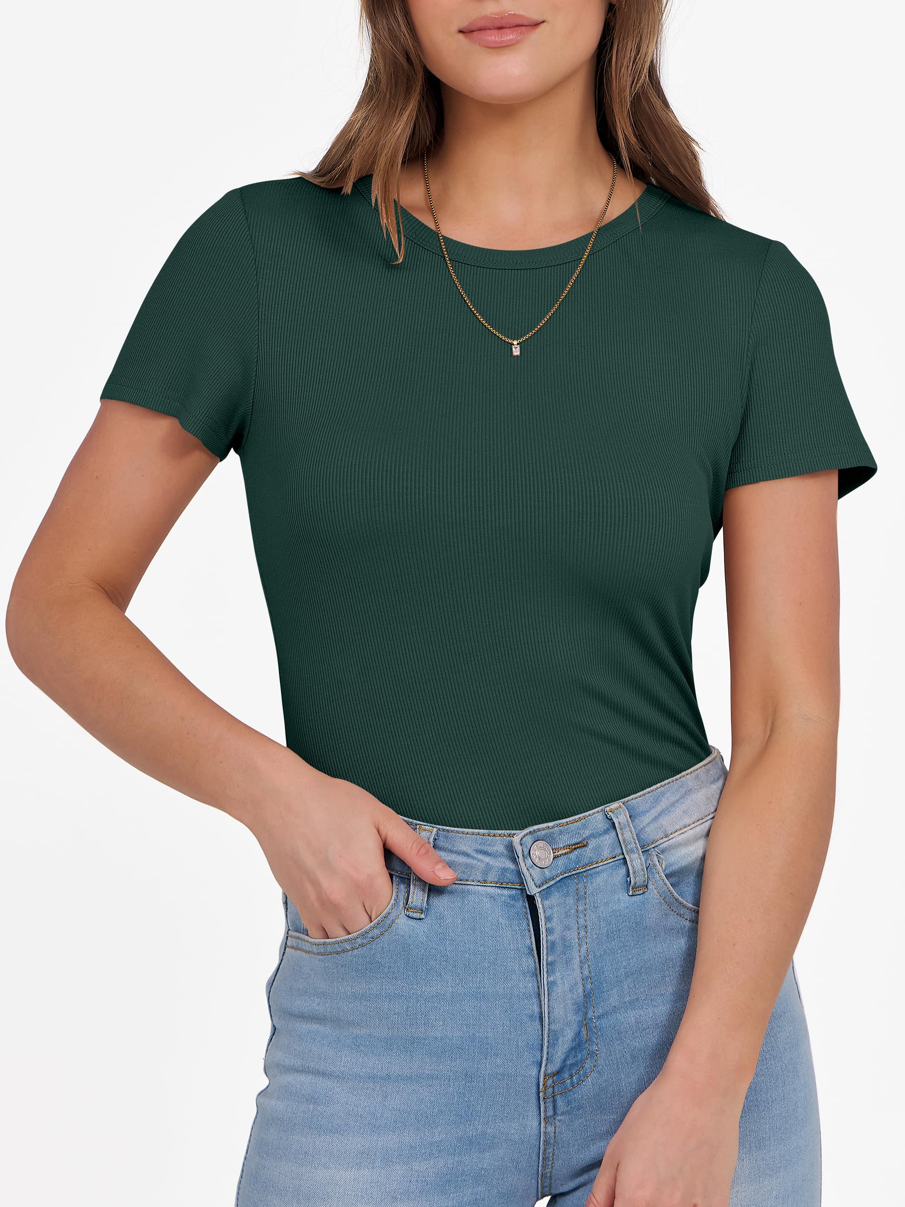Features - Get summer-ready with our comfy and soft knitted fabric, perfect for all occasions. Our short sleeve crew neck design is versatile - wear it to school, the gym, the beach, or casual daily wear. The slim fit highlights your perfect figure, making you feel confident and stylish wherever you go. Comfortable, lightweight, and oh-so-flattering, our basic summer slim tee is an essential addition to your wardrobe.
