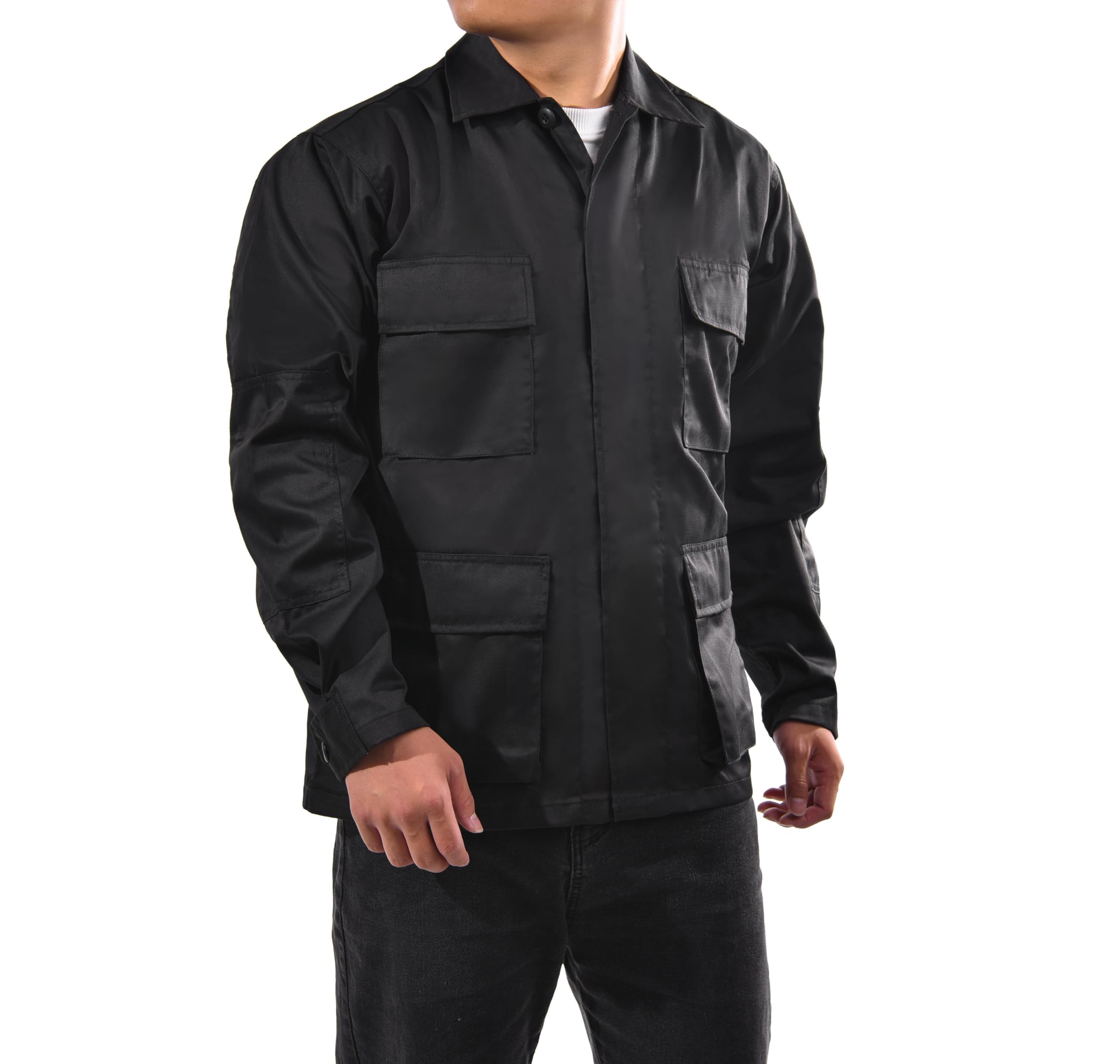 Description Cotton / Polyester Twill Woven Fabric, Four large button pockets with flaps, Cuff with adjust tab and buttons, Please kindly check the sizes and measurement below before your purchase; ***This Shirt is quite big, please kindly check size table before you buy*** Please note: Chest measurement is made from 1 inch down from the armpits; Size S : Chest = 46 inches (116cm), Length = 29.5 inches (75cm); Size M : Chest = 48 inches (122cm), Length = 30 inches (76.5cm); Size L : Chest = 52 inches (132cm), Length = 30 inches (76.5cm); Size XL : Chest = 58 inches (147cm), Length = 30.5 inches (77.5cm); Size 2XL : Chest = 60 inches (152cm), Length = 31 inches (78.5cm);