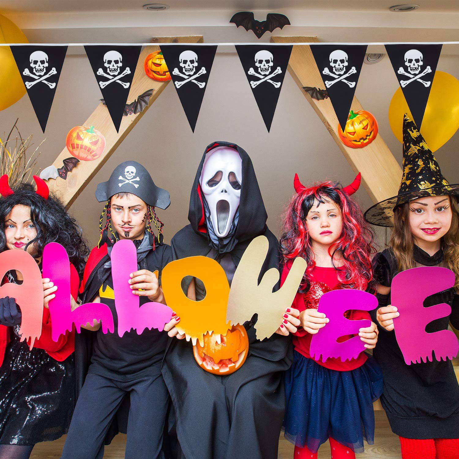 Sufficient quantity: you will get 4 sets of Halloween pirate banners, each set consists of 15 pieces triangle flags which have been strung together, totally 60 pieces