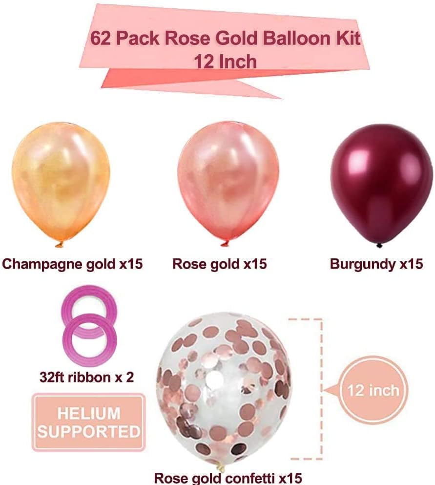 Valuable Pack: The burgundy party balloons kit includes 15pcs rose gold balloons, 15pcs rose gold confetti balloons, 15pcs burgundy balloons, 15pcs rose gold balloons and 2 rolls of balloon ribbon. This comprehensive set ensures you have everything needed to create a stunning and cohesive balloon display for any celebration, making it ideal for both small gatherings and larger events.