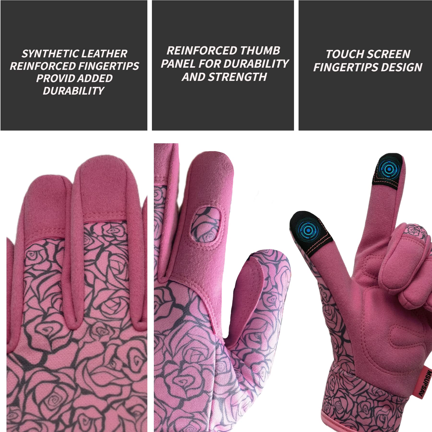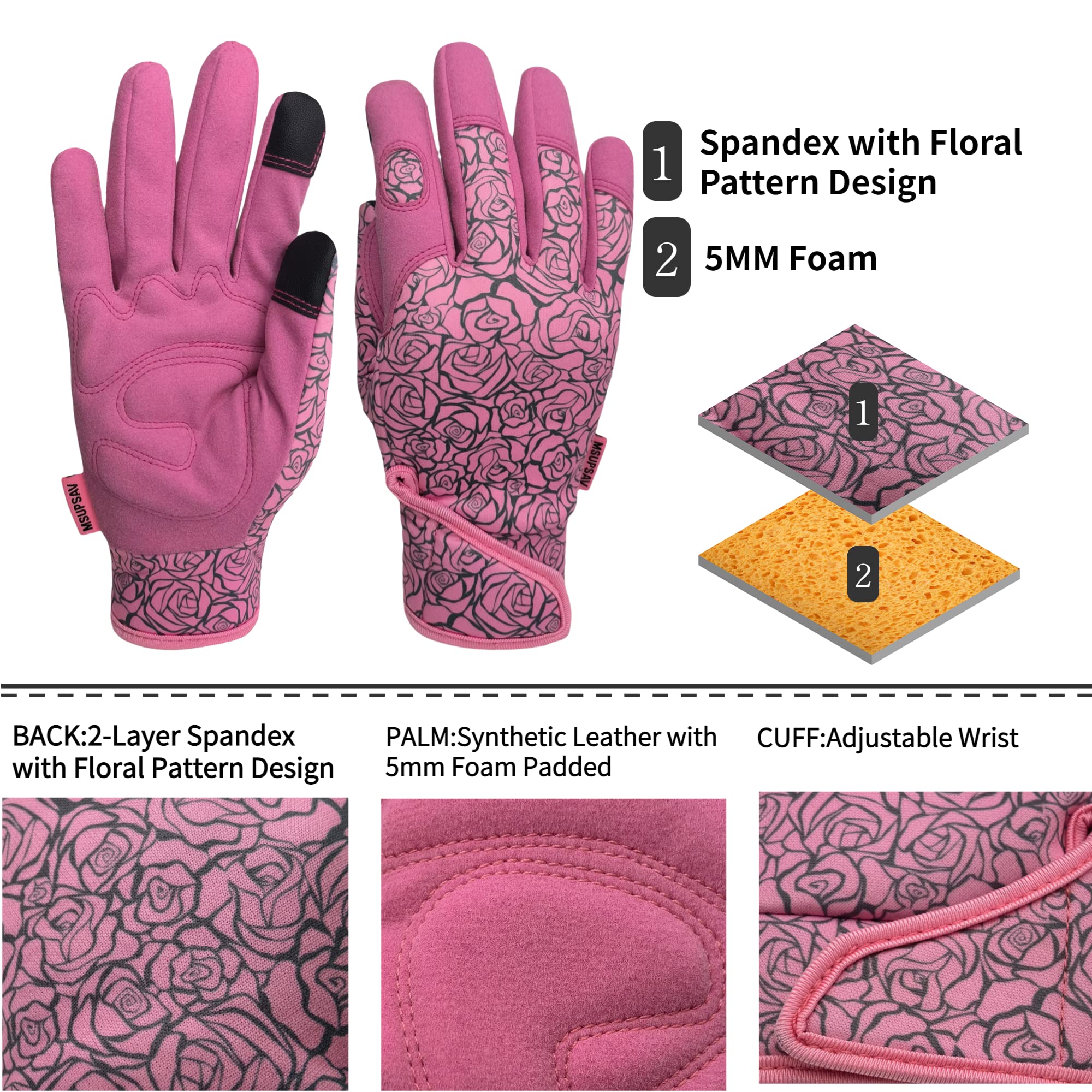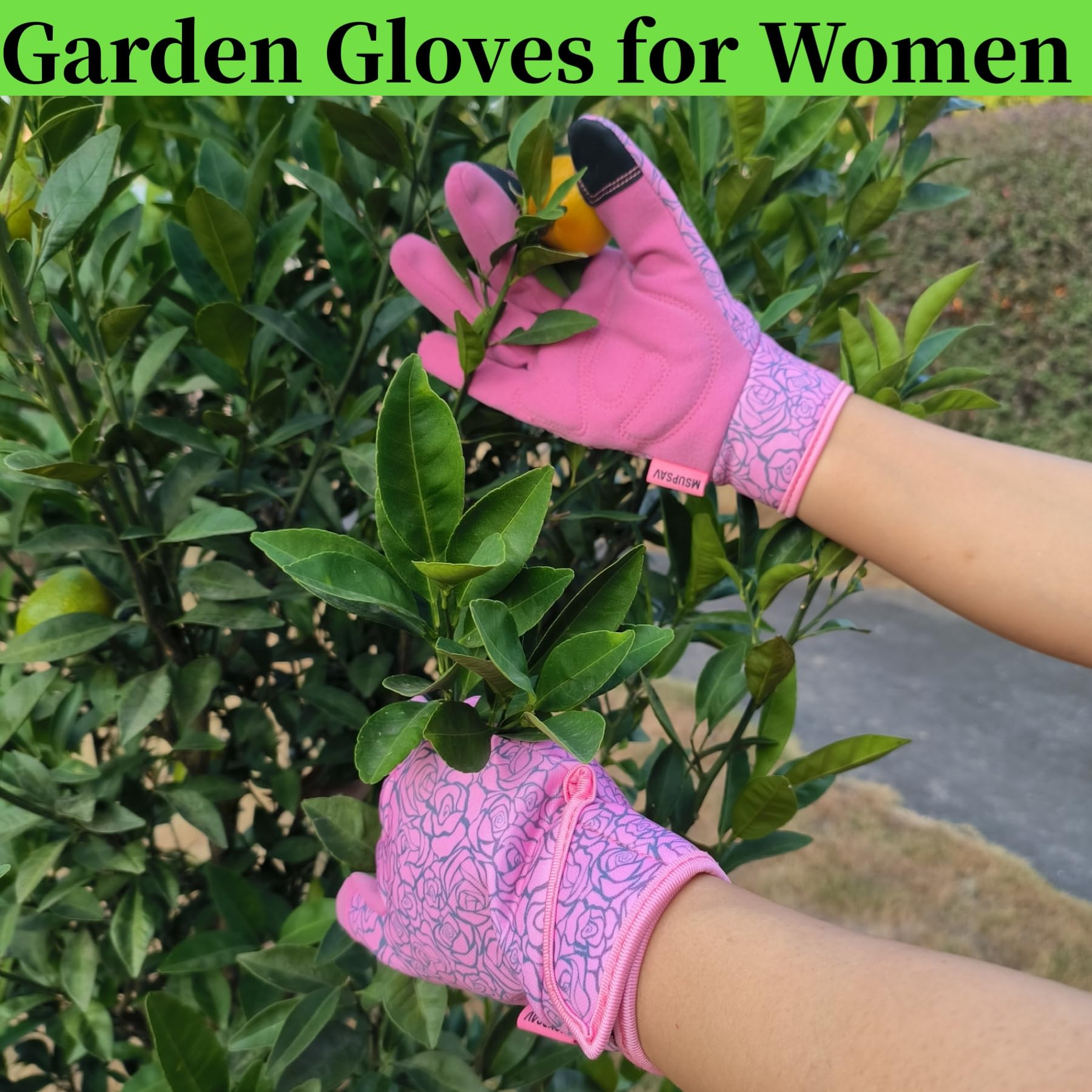 【MSUPSAV GARDEN GLOVES FOR GARDENING】Stretchable double-layer spandex design back keep your hands flexible,breathable&comfortable on the job. Leather with foam padded palm and reinforced fingertips increase durability.Supportive adjustable with hook& loop strips closure cuff for snug secure fit.
