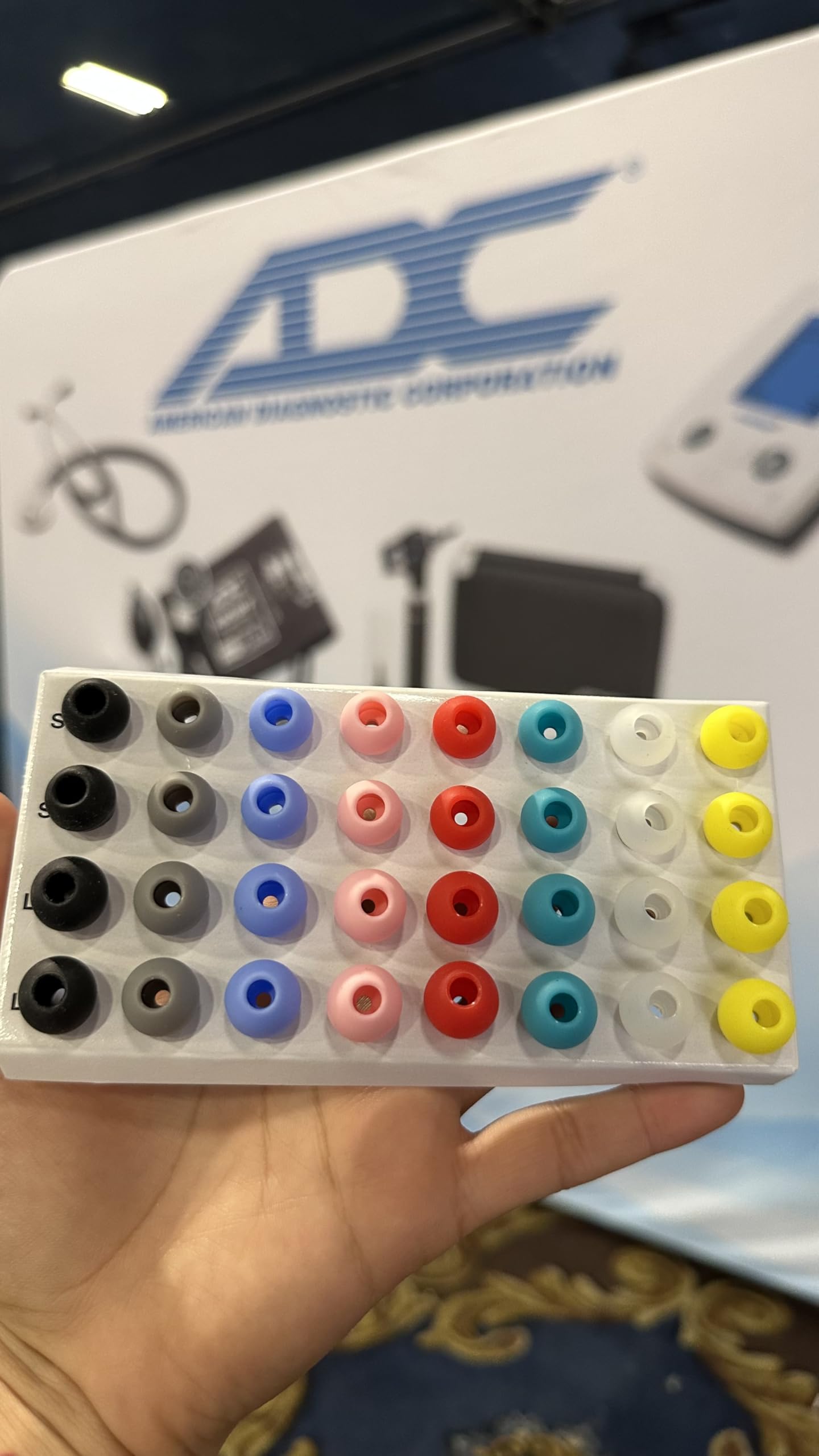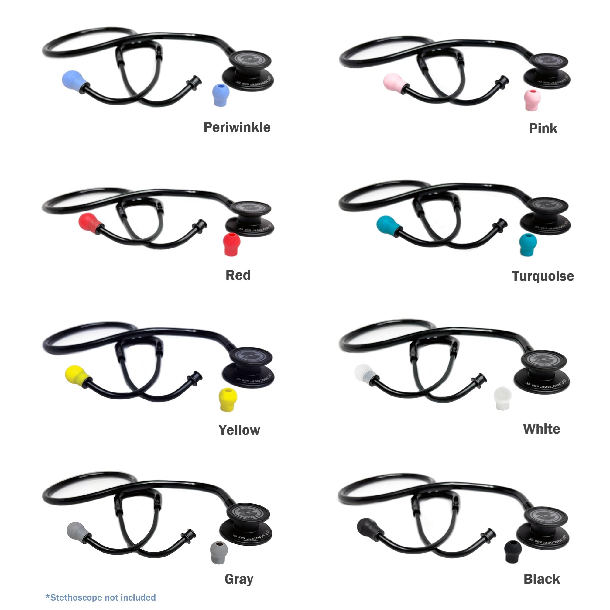 Add a pop of color with premium Adsoft POP eartips in eight fun shades. ADCs snap-on style eartips are made with silicone for a soft and snug fit, providing long-wearing comfort and a tight acoustic seal. Each multipack contains eight colors Pink, Red, Yellow, Periwinkle, Turquoise, Black, Gray, and White with one Large pair and one Small pair in each color. Fits all Adscope brand Cardiology, Clinician, and Sprague stethoscopes.