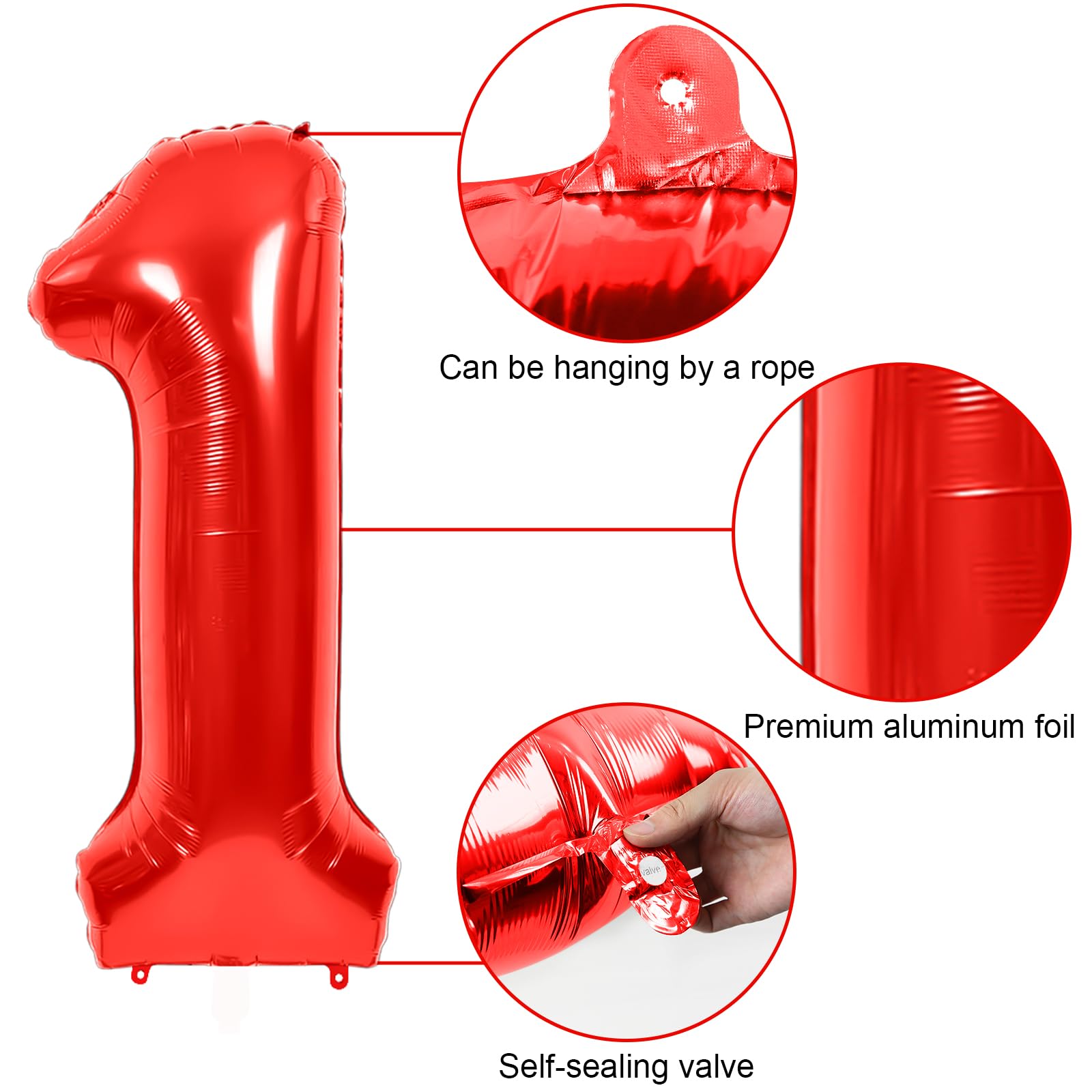 Easy to Use: The red number 1 foil balloons have self-sealing valve does not need to be knotted for easy inflation and deflation. It can be inflated with air or helium. When filled with helium, one year old birthday helium balloons can float in the air. After the party you can use a straw to slowly deflate the red number balloons and fold them neatly for next time use.