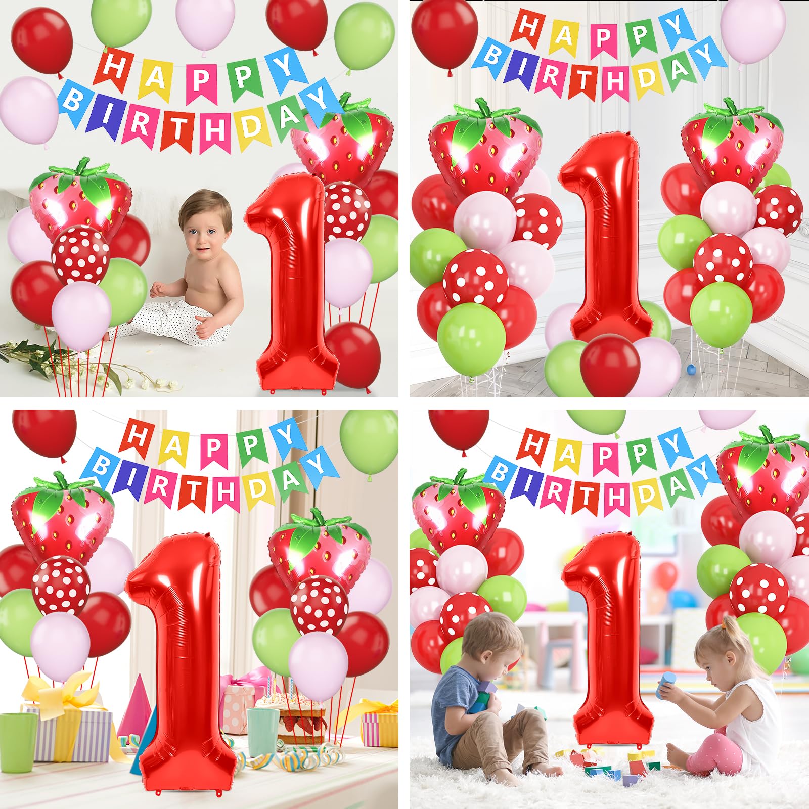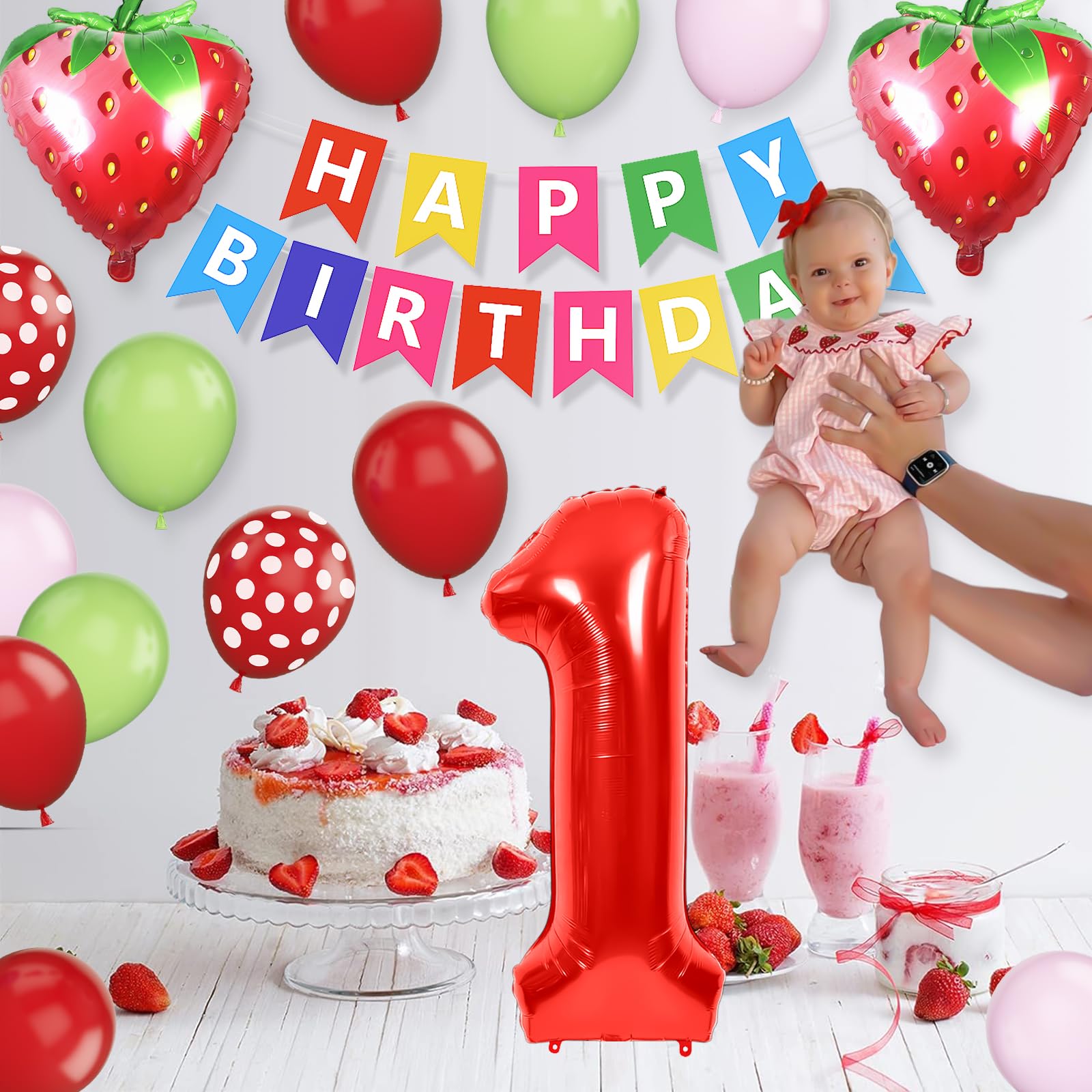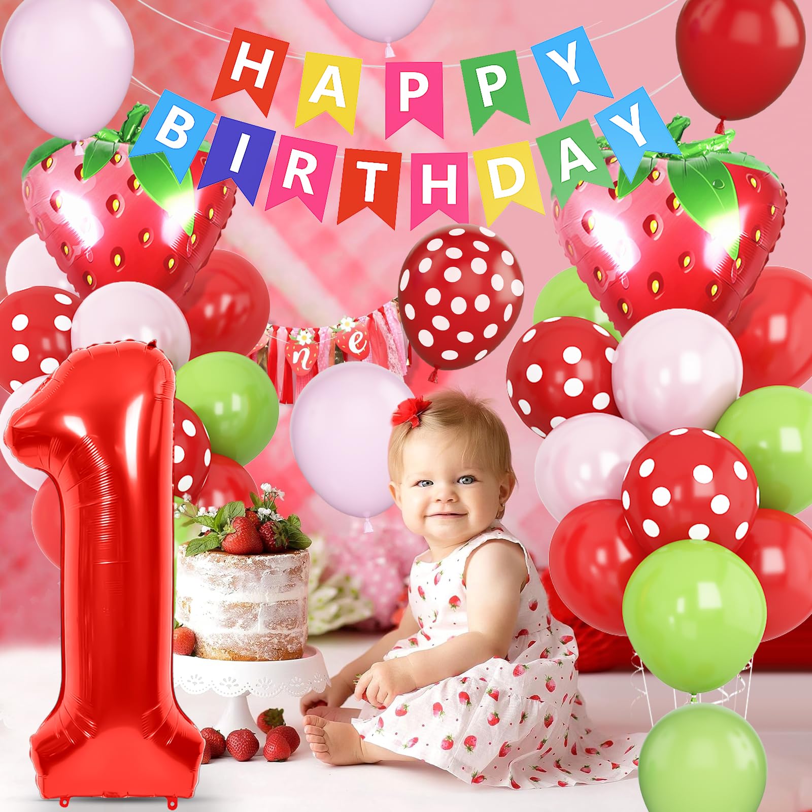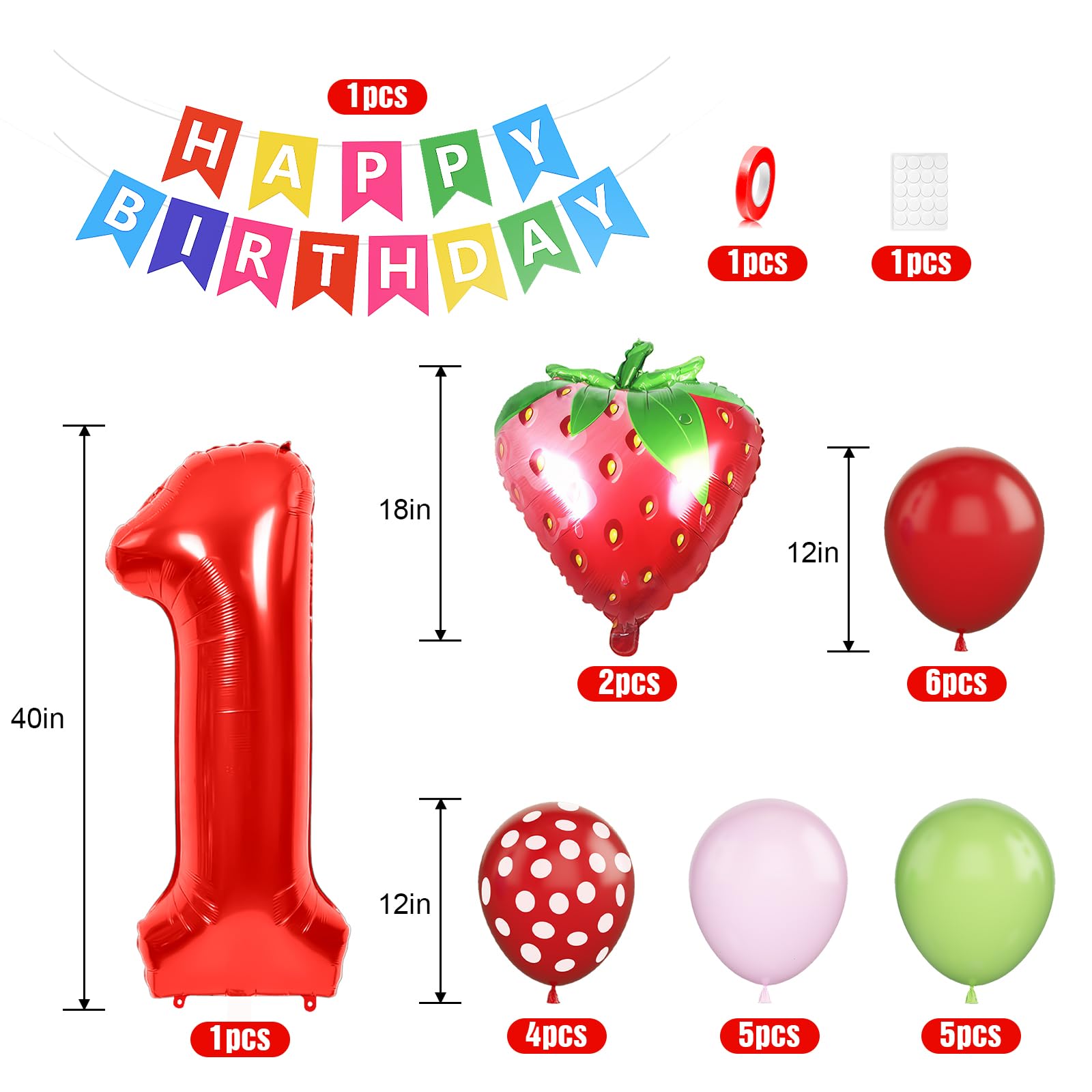 Wide Application - The 1st birthday balloons are suitable for your strawberry balloon, summer birthday party, baby girl's 1st birthday, berry sweet birthday party, fruit theme party, anniversary or any other occasions. This red one year old decoration set will make your girl 1st birthday party different! You can DIY any digital combination for your party, no matter indoors or outdoors. Adorn doors, walls, ceilings, headboards, doorways, and other desired locations effortlessly.