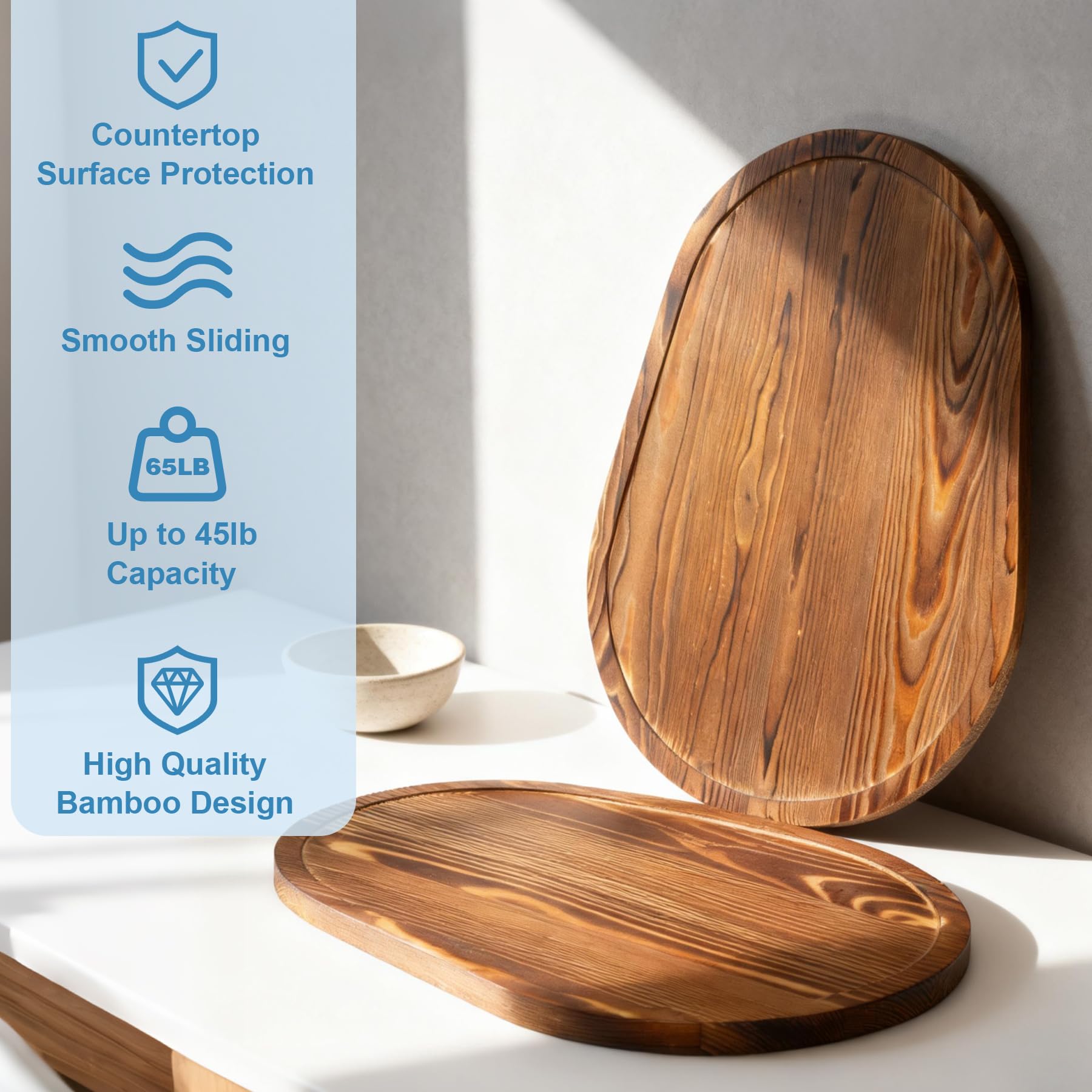 HIGH QUALITY FOOD-GRADE MATERIAL: The appliance sliding mat is made of high quality natural Pine Wood, sturdy and durable, not easy to crack, smooth surface, not only protect the machine, but also prevent the countertop from being scratched by the blender