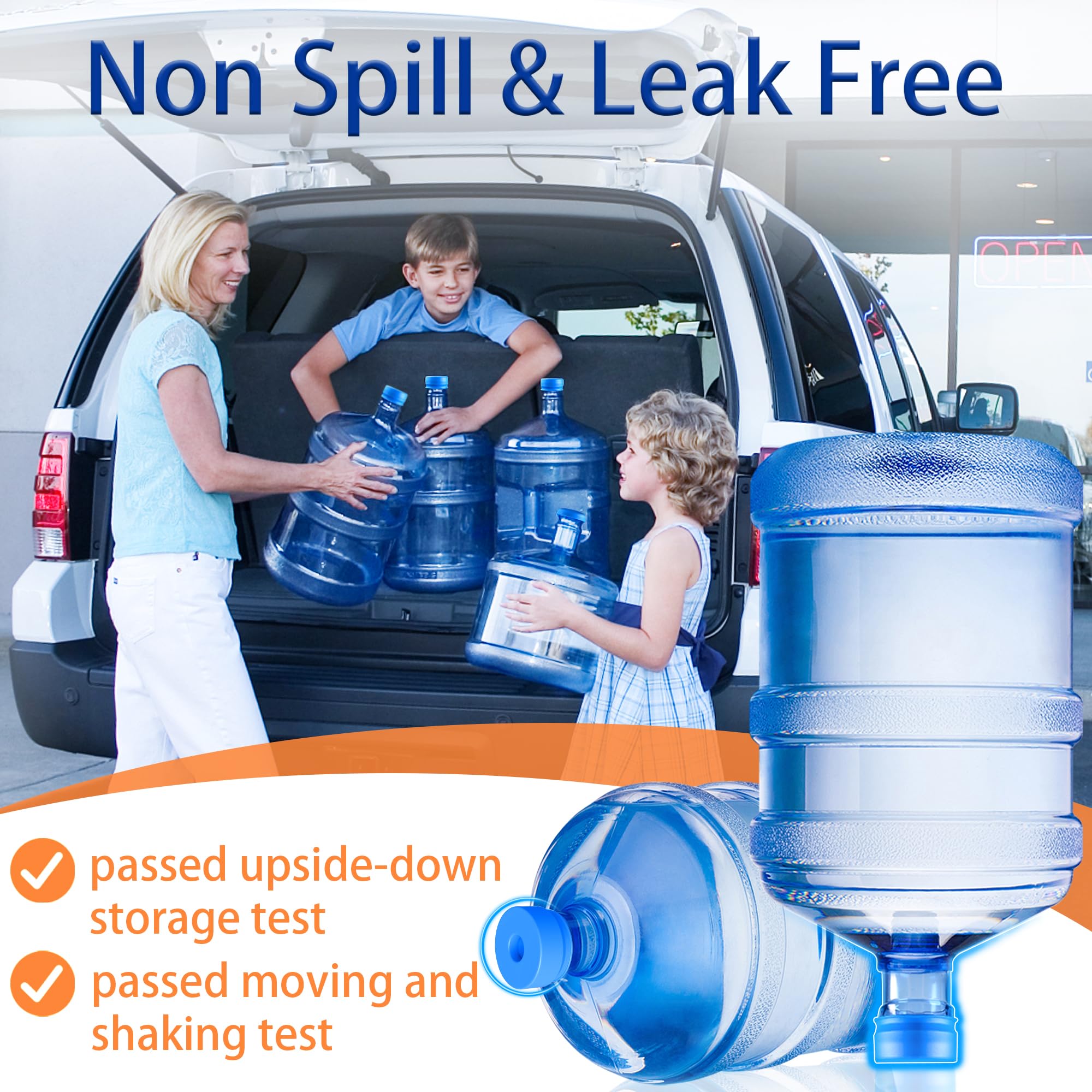 [Anti-Drop Off Small Lids] : We upgraded water jug cap, make a new Anti-drop off CHOKE POINT to prevent the middle lids falls inside the container, the cap is thicker than before.