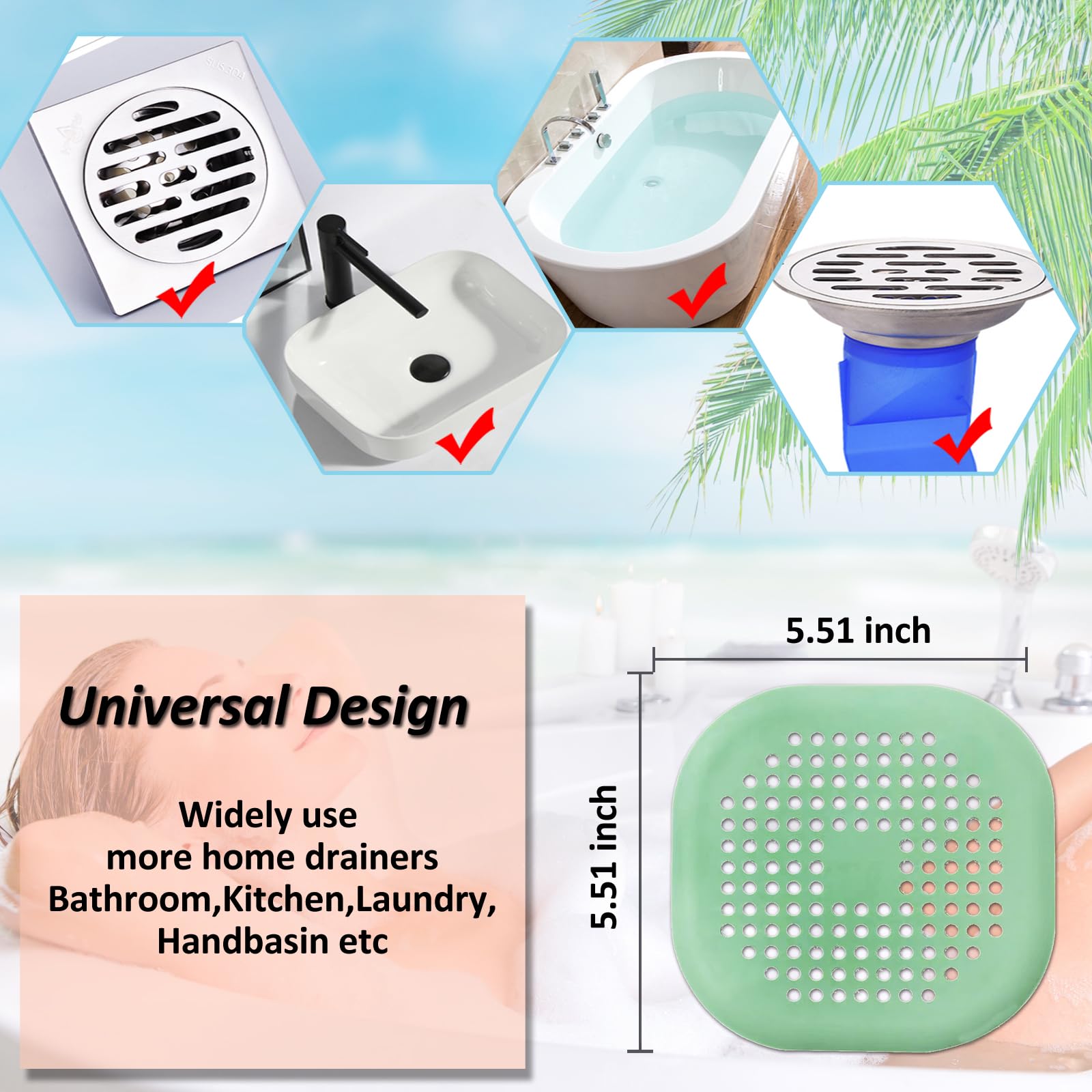 Warm Tips: Please Do not attach the suction cup to the tile joints. Requires the hair drain must be flat with no raised obstructions. Otherwise it can't be suction. Size: square,5.51*5.51*0.04inch, Fits all of less than 4.7*4.7inch outlet of sinks, showers or tubs drain.
