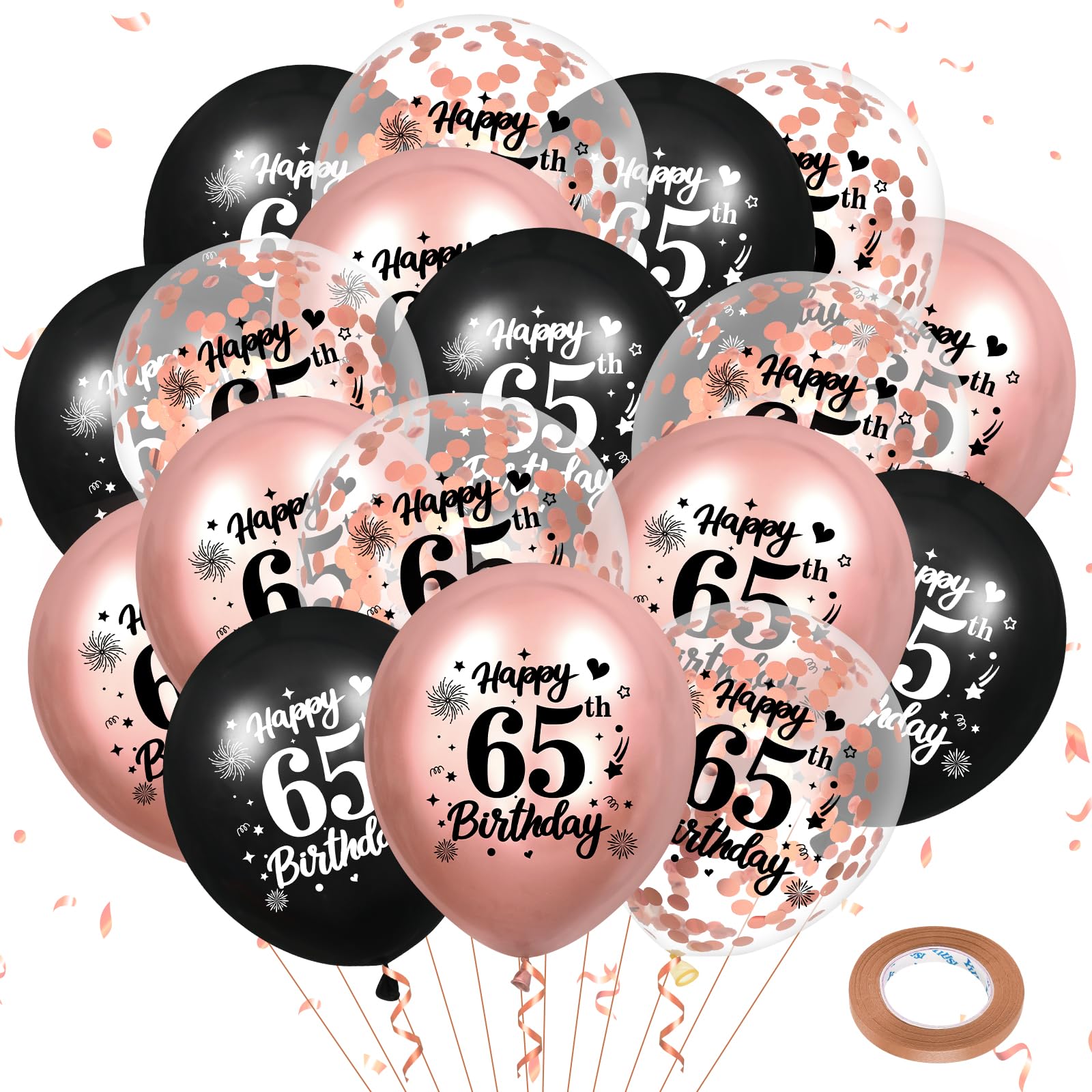 Happy 65th Birthday Balloons Arch: Big size 32inches Number 65th Birthday Balloons and 2 love-shape balloons come with straw to inflate, made of sturdy mylar foil material to stand the long-hour display. 30pcs latex balloon in pink, white, balck, rose gold and confetti perfect match the 65th birthday party theme. No matter the party is indoor or outdoor, easy to assemble, your party will be a big hit