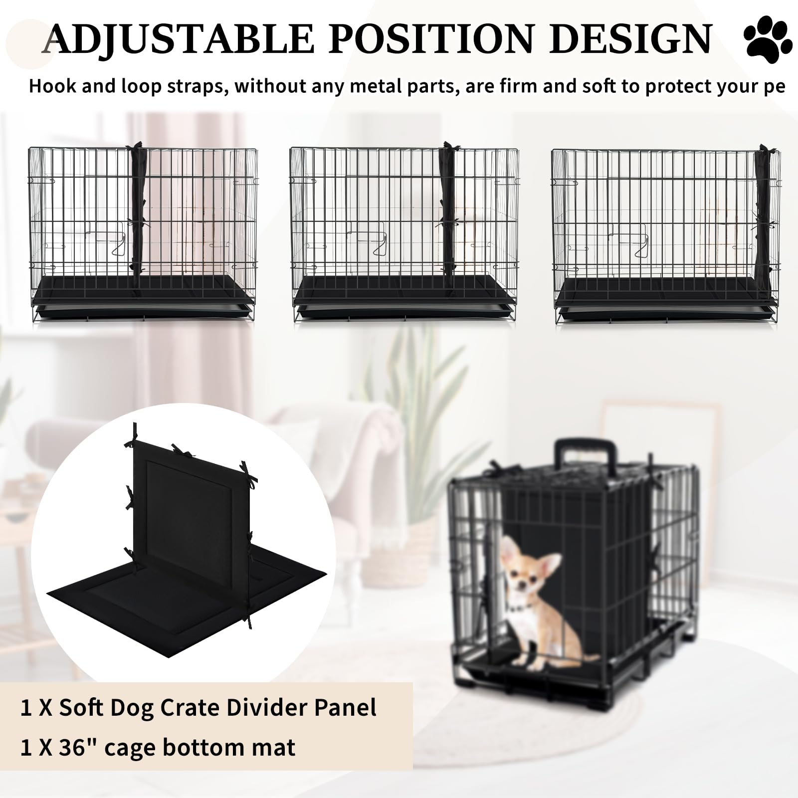 Features: You will receive 1 pcs dog crate divider panel ( divider only, without crate), suitable for 36 inch dog crates. Its material is oxford cloth exterior and spun cotton filling. With a sizable area of 24 x 22.5 x 36 inches, the divider boasts an adaptable design that will cater to match the size change of the puppy from puppy to adult Specifications: Material: Outer: tough oxford cloth Filling: thick spun cotton Color: black Size: 24 x 22.5 x 36 inches Package includes: 1 x Dog crate divider panels with cushion (divider only, without crate) Notes: Manual measurement, please allow slight errors on size. The color may exist a slight difference due to different screen displays. Small items are included, please keep them away from pets in case of choking risk. Before purchase, confirm whether the product size is suitable for your pet, and observe the pet's reaction when using. Please remove the product in time if there is any discomfort.