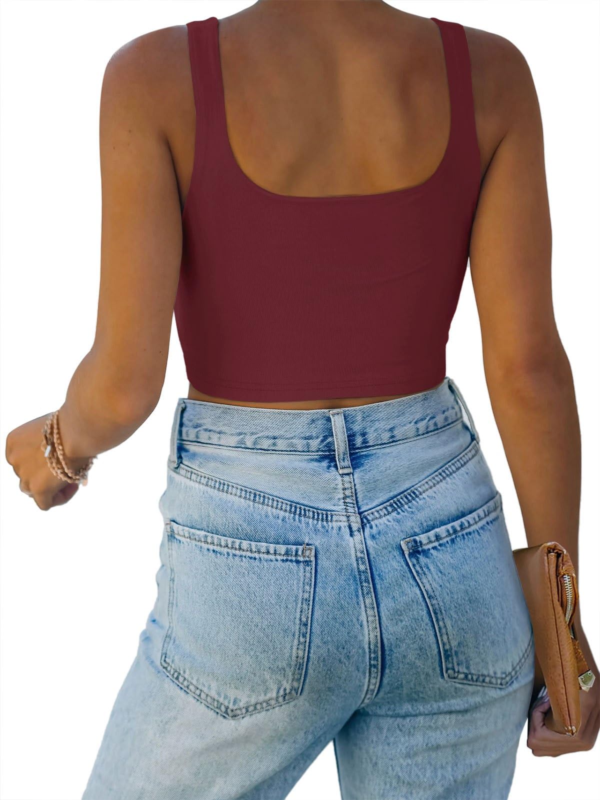 🌸Versatile,can be worn in many different ways!This square neck crop top for teen girls/women is basic and chic.Cute with yoga pants, joggers,skirts or high waist jeans!