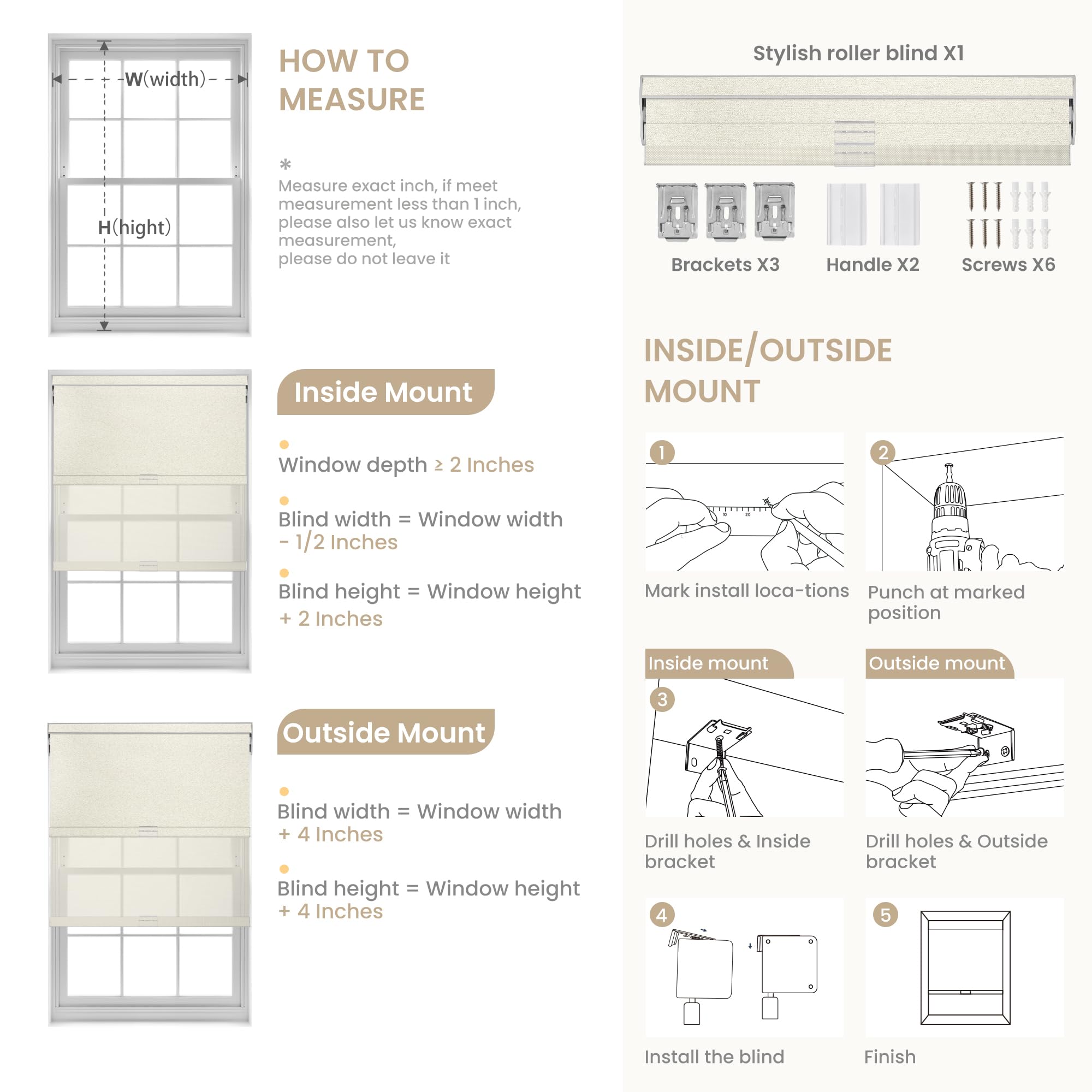 【Quality Service】 - When you buy double roller shades, we can provide you with professional size measurements and color matching suggestions to ensure that you get the right, beautiful double window blinds! We'll speed up production and delivery, and provide 24 months warranty service, if there is any problem with the product, please feel free to contact us, our most professional after-sales team will solve your problem by the best way.