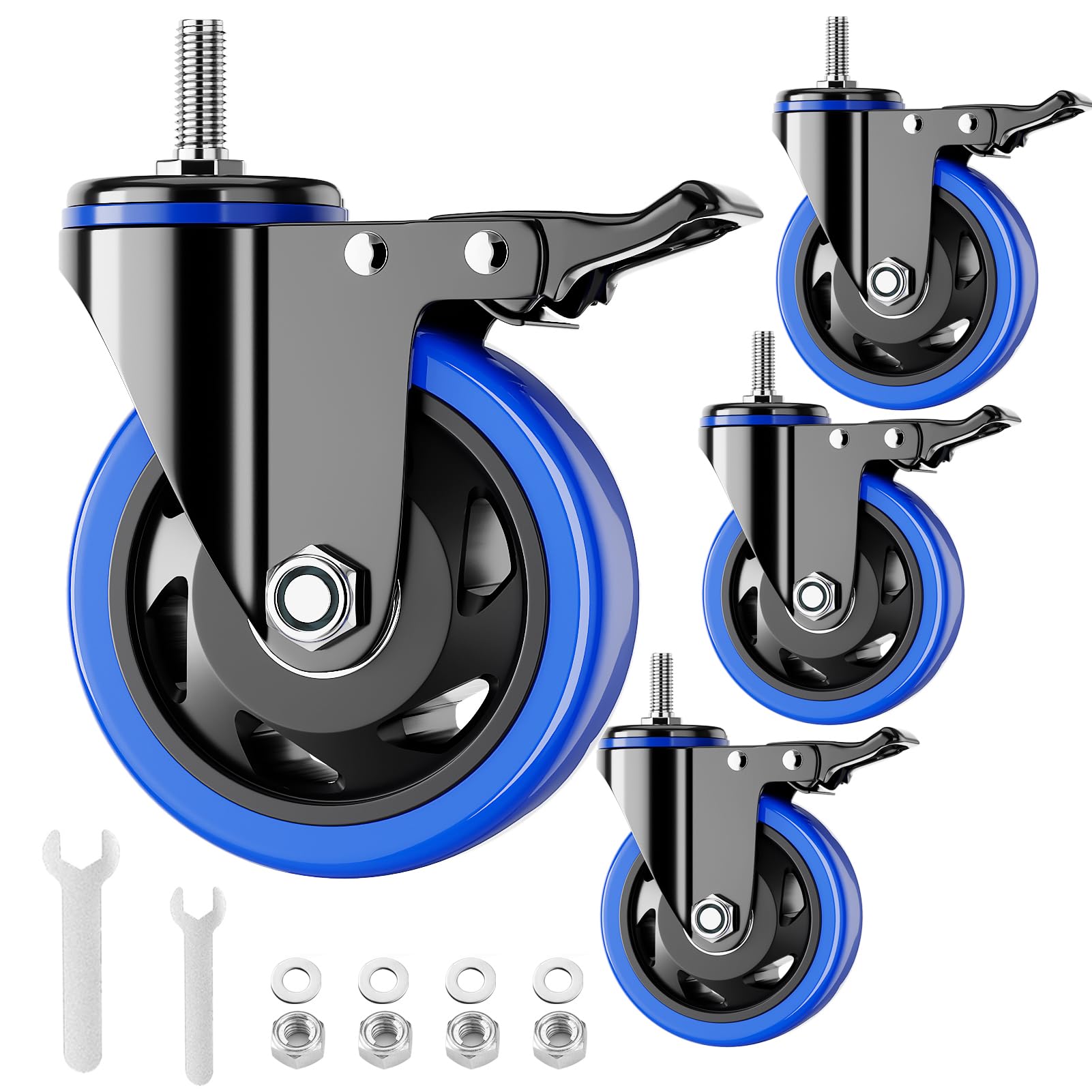STANDARD AMERICAN SIZE 1/2" -13UNC x 1": Threaded caster wheels Diamater: 1/2", Stem Length 1", thread dual locking heavy duty caster wheels with brakes easy to install with included mounting hardware, 4 nuts, 4 washers, and 2 spanner, please confirm the required screw specifications before purchasing the stem caster wheels.