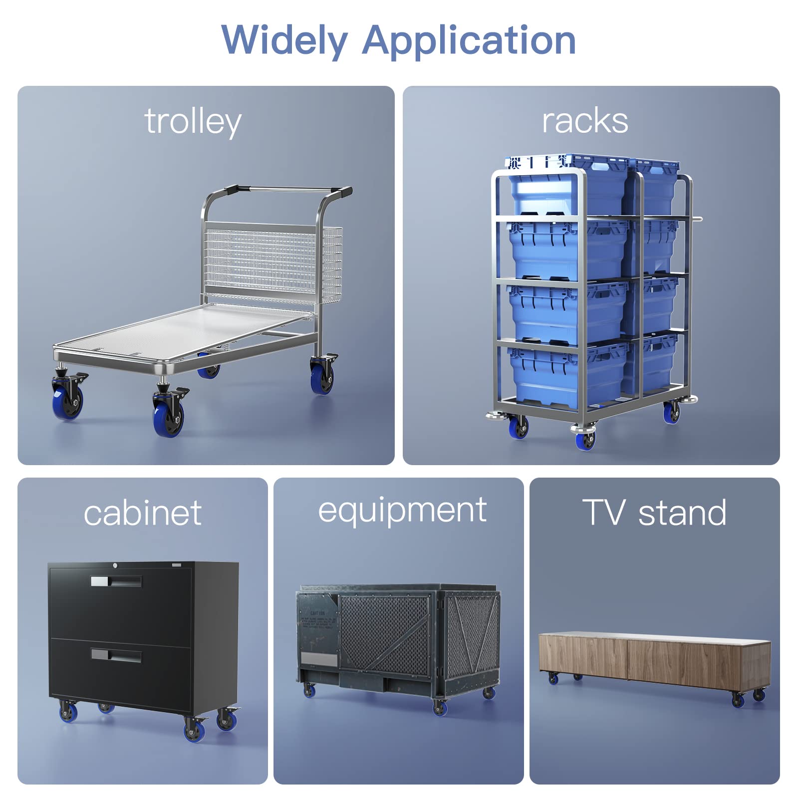DOUBLE SAFETY BRAKE: Our top plate swivel caster wheels can locks the wheel and the swivel simultaneously, holding the equipment firmly remain in place when the threaded casters are locked. Locking casters design make it more safe when used as rolling workbench casters, industrial casters, heavy-duty casters, especially on uneven surface.