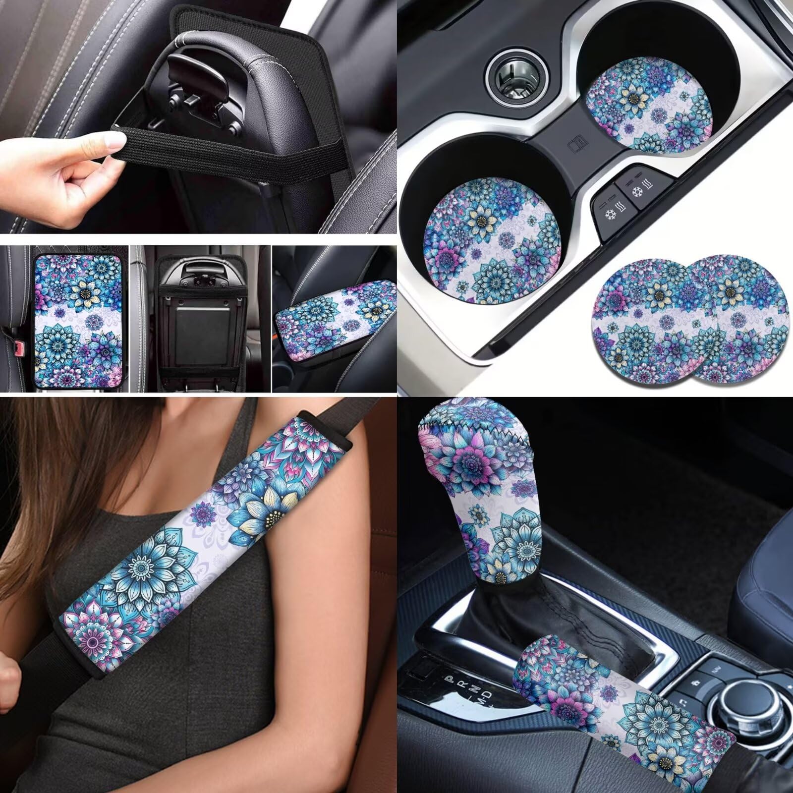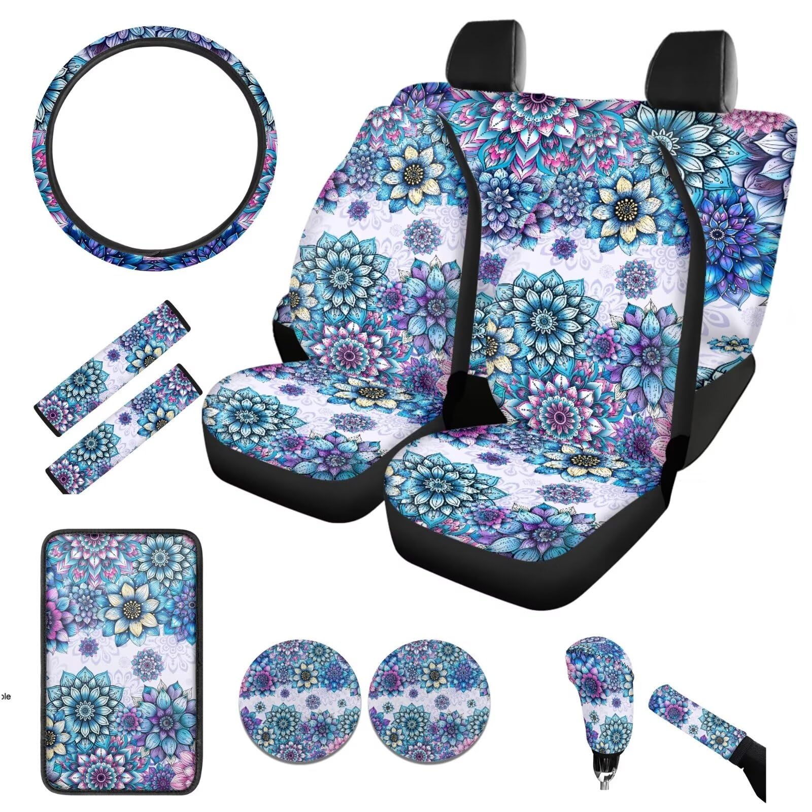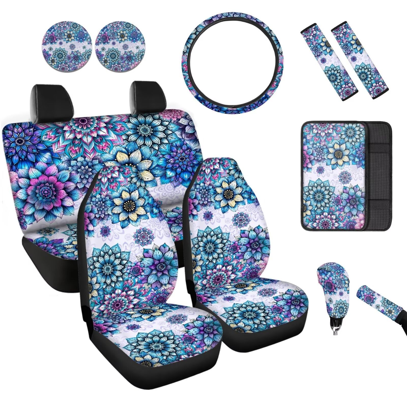 🚗UNIQUE PRINT: Emarkable colors and graphics to add to your car's interior,Suitable for drivers to decorate their vehicles.such as Sunflower/Butterfly/Tie-Dye Rainbow/Hipie Bohemian/Galaxy/Ethnic/Cactus/Aztec tribal/Cute Cat Dog Wolf Animal Print/Aqua Flower and Tropical Sea Turtle, Etc, These special edition Automotive Interior Accessories will add a touch of elegance and Class to your vehicle.