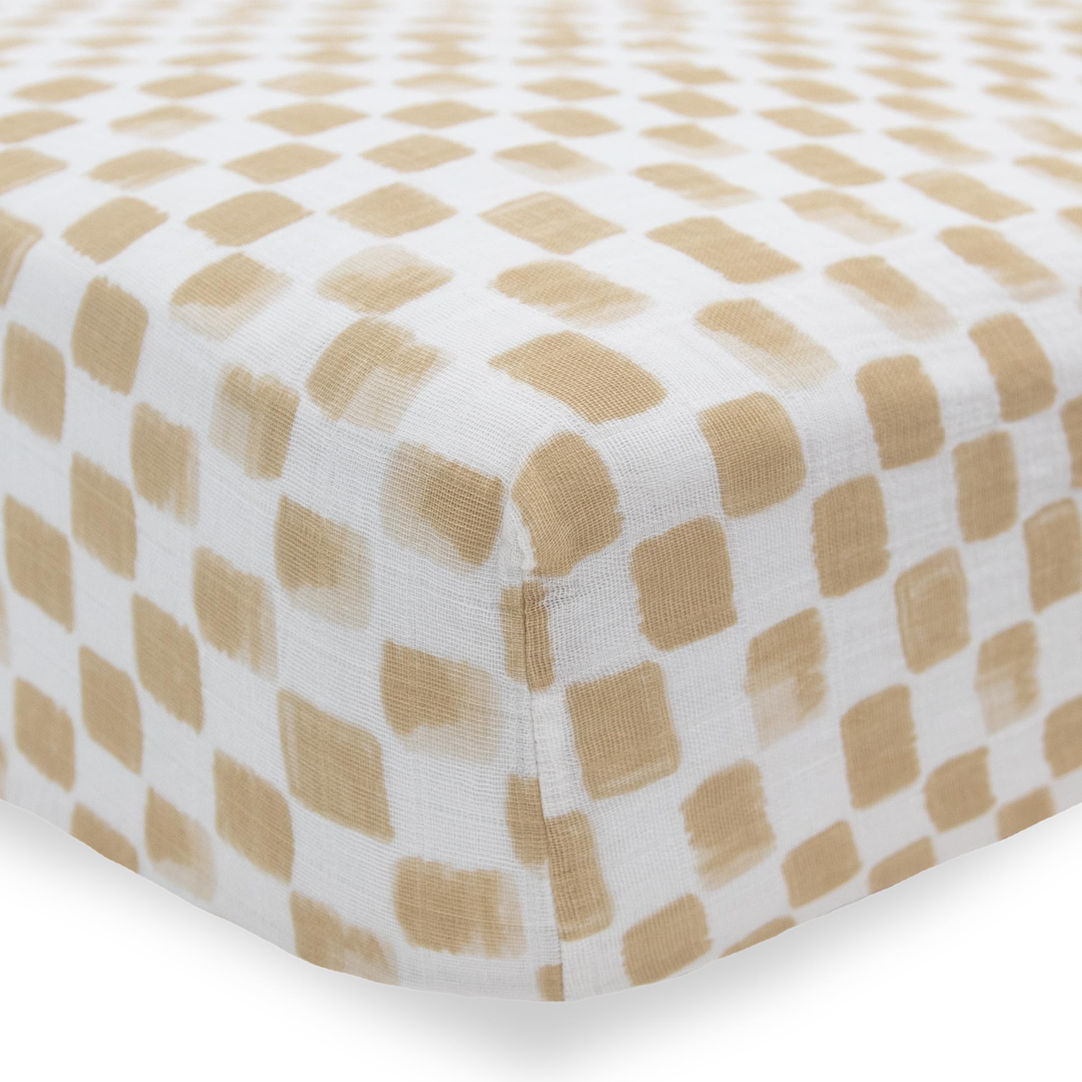 NURSERY ESSENTIAL: We choose premium 100% cotton muslin for crafting our fitted sheets to ensure your babyβs delicate skin is resting on a soft, breathable fabric that allows heat to escape and fresh air to enter. You'll find these sheets are perfectly suited for year-round cozy sleep. Specifically tailored to fit standard size crib mattresses, the fitted sheet measures 52βL x 28β W. Premium elastic secures the sheet guaranteeing a safe, snug fit.