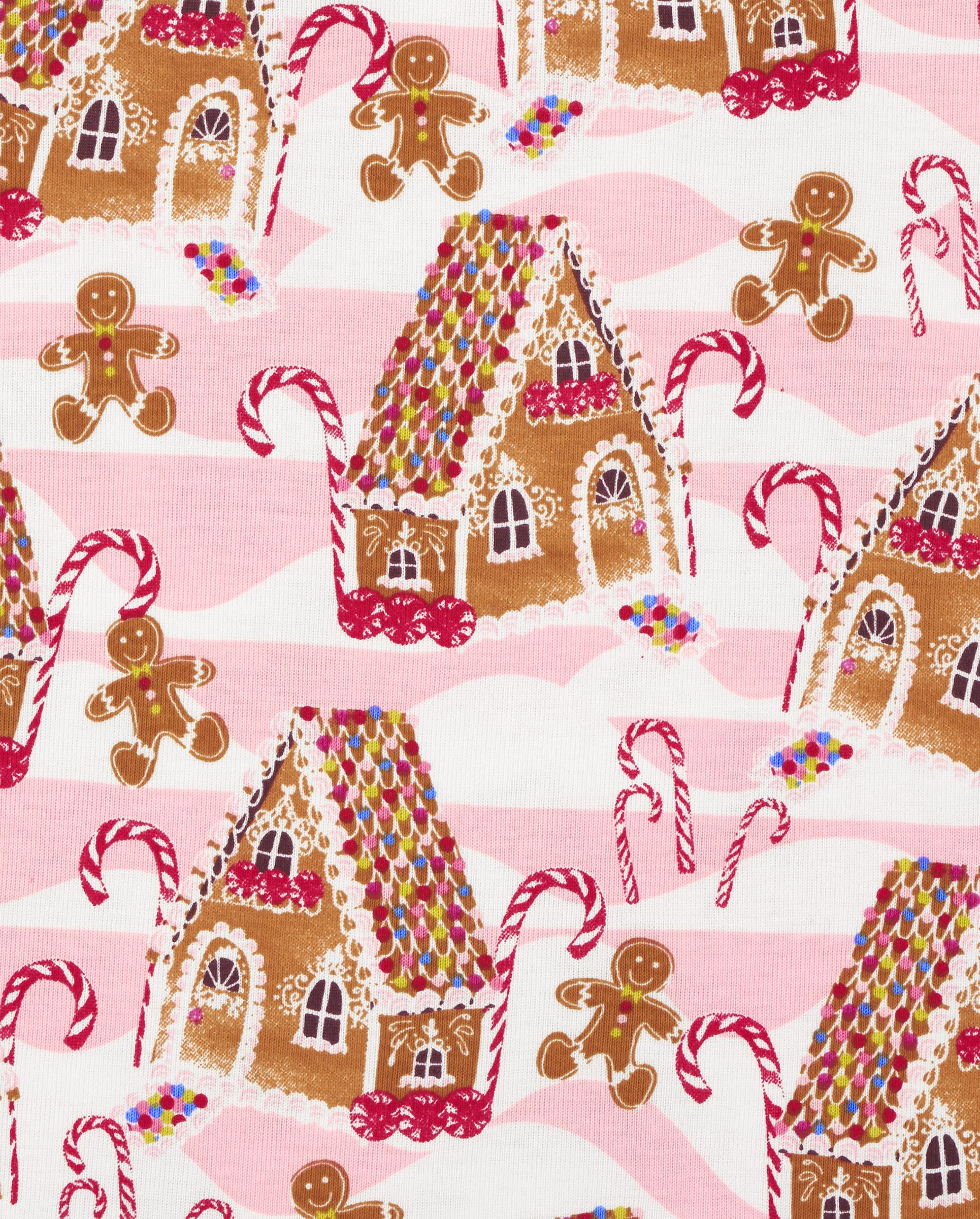 PAJAMA PANTS — Features pull-on elasticized waistband, banded leg cuffs and allover gingerbread house print