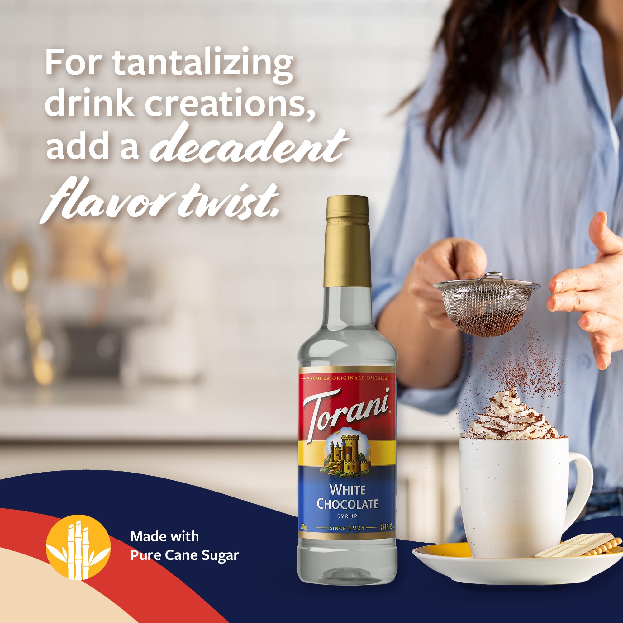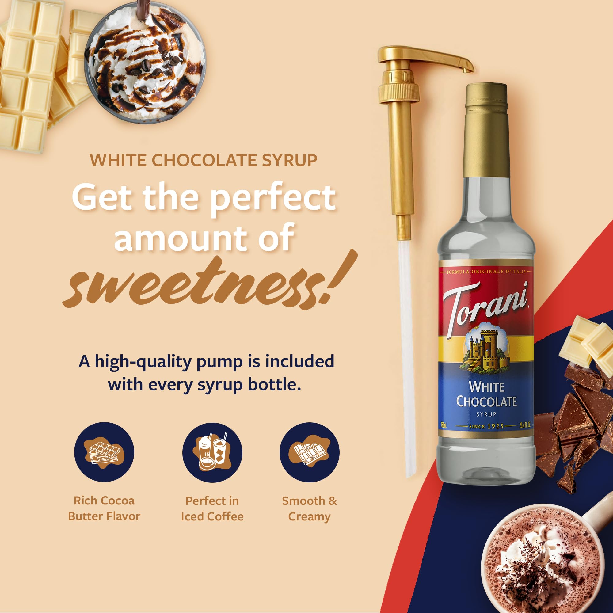 CONVENIENT & MESS-FREE: The large 750 ml Torani White Chocolate Syrup bottle, made of BPA-free plastic, comes with a high-quality pump for perfect portion control and effortless sweetening.