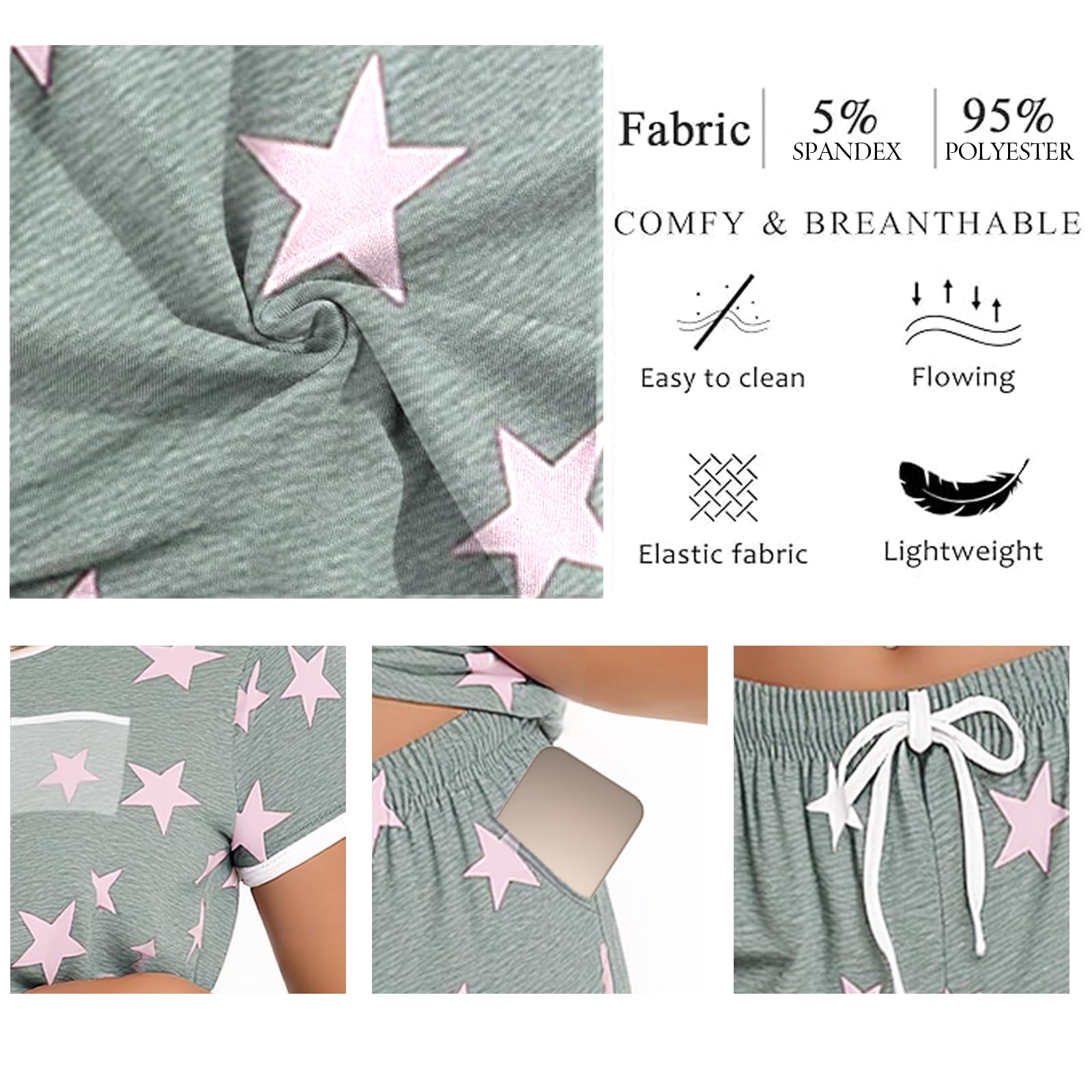 Adjustable & Relaxed Fit – Drawstring waistband on the pajama shorts provides a customizable fit, while the loose-cut design enhances airflow for effortless lounging or sleeping.