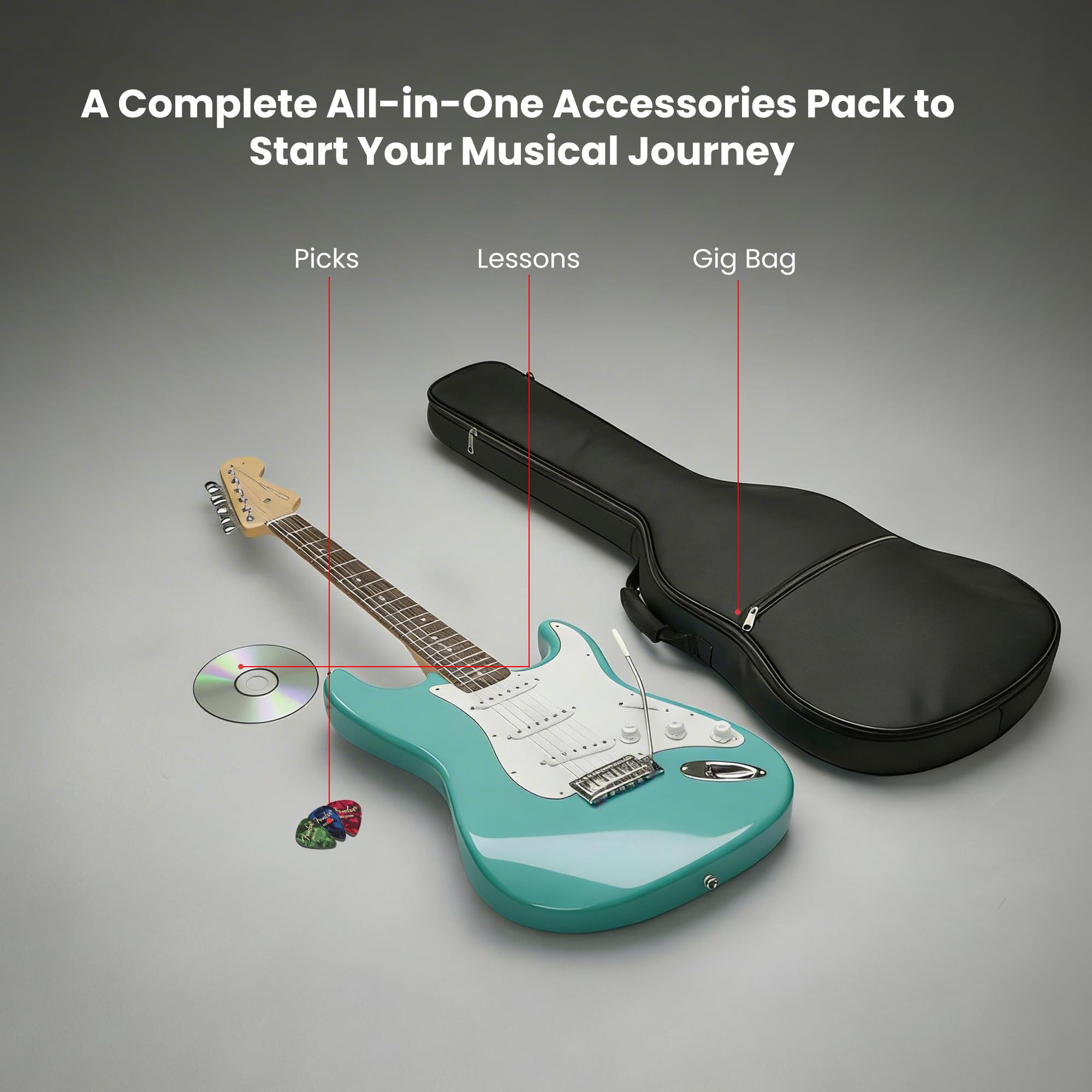 TREMOLO BRIDGE: Featuring a tremolo bridge with a removable arm, this Stratocaster allows for expressive pitch modulation and dynamic playing techniques while maintaining beginner-friendly playability