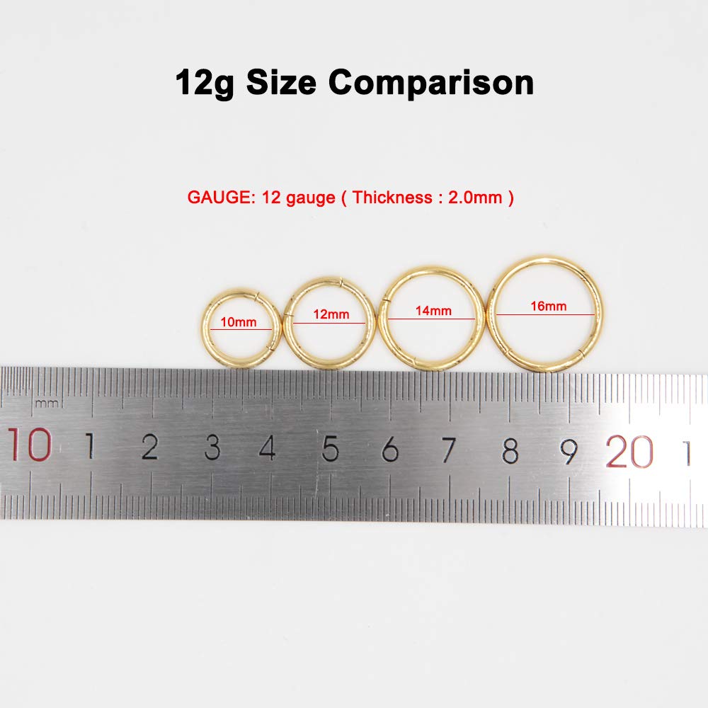 12mm Septum Rings for Mens and Womens: 12 gauge (thickness: 2mm), inner diameter 12mm ( 15/32 inches ). Please check the inside diameter carefully according to the SIZE CHART OF THE HOOP NOSE RING. Select the most suitable size for yourself.