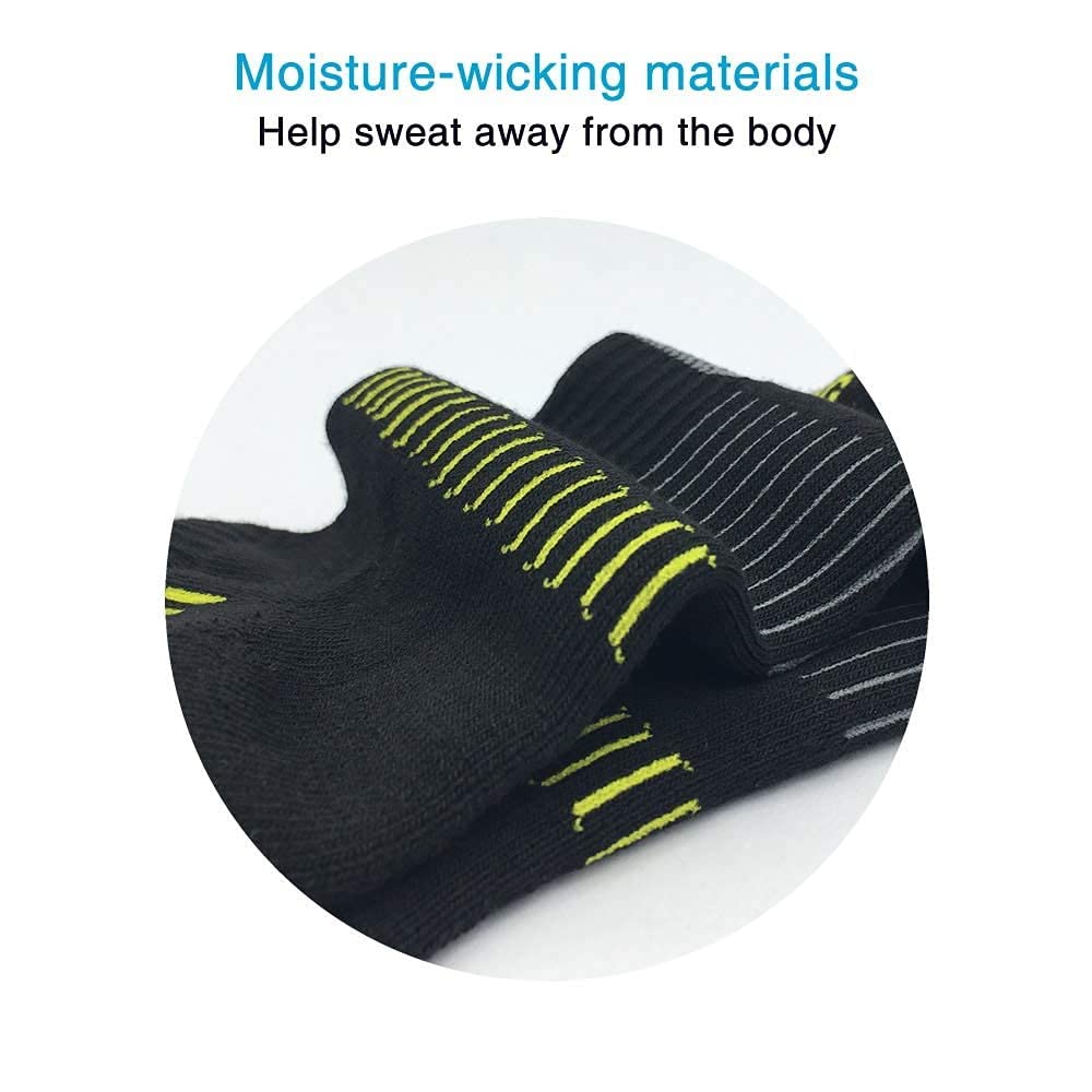 The well-stretched ribbed arch strap provides stability and a snug fit, which helps athletic socks stay in place and no slipping