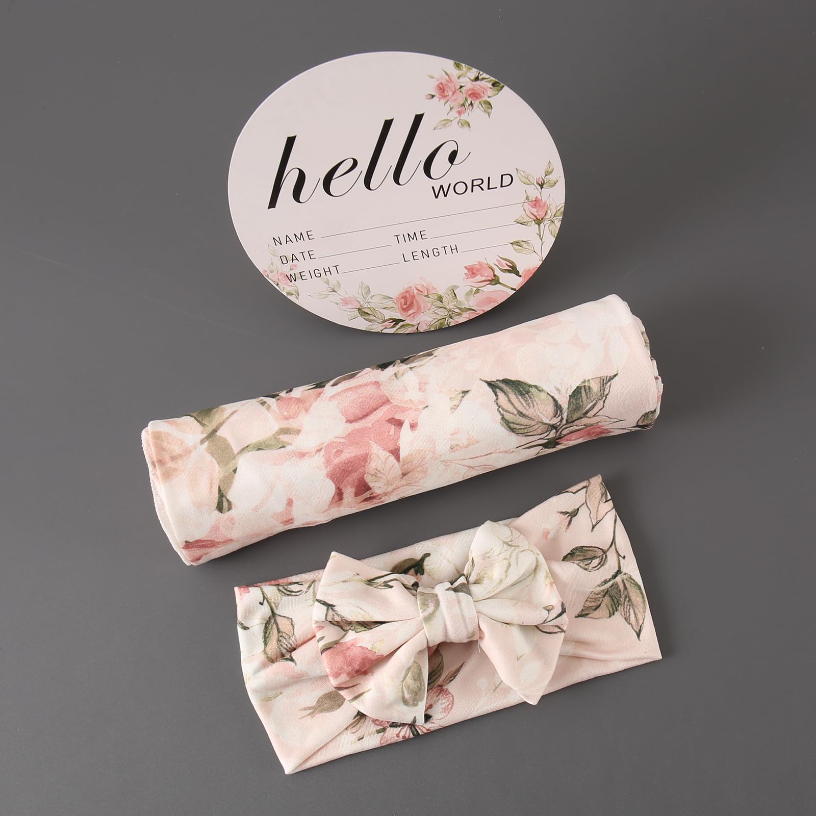Galabloomer Newborn Receiving Blanket Headband Set Flower Print Baby Swaddle Blankets (Vintage)