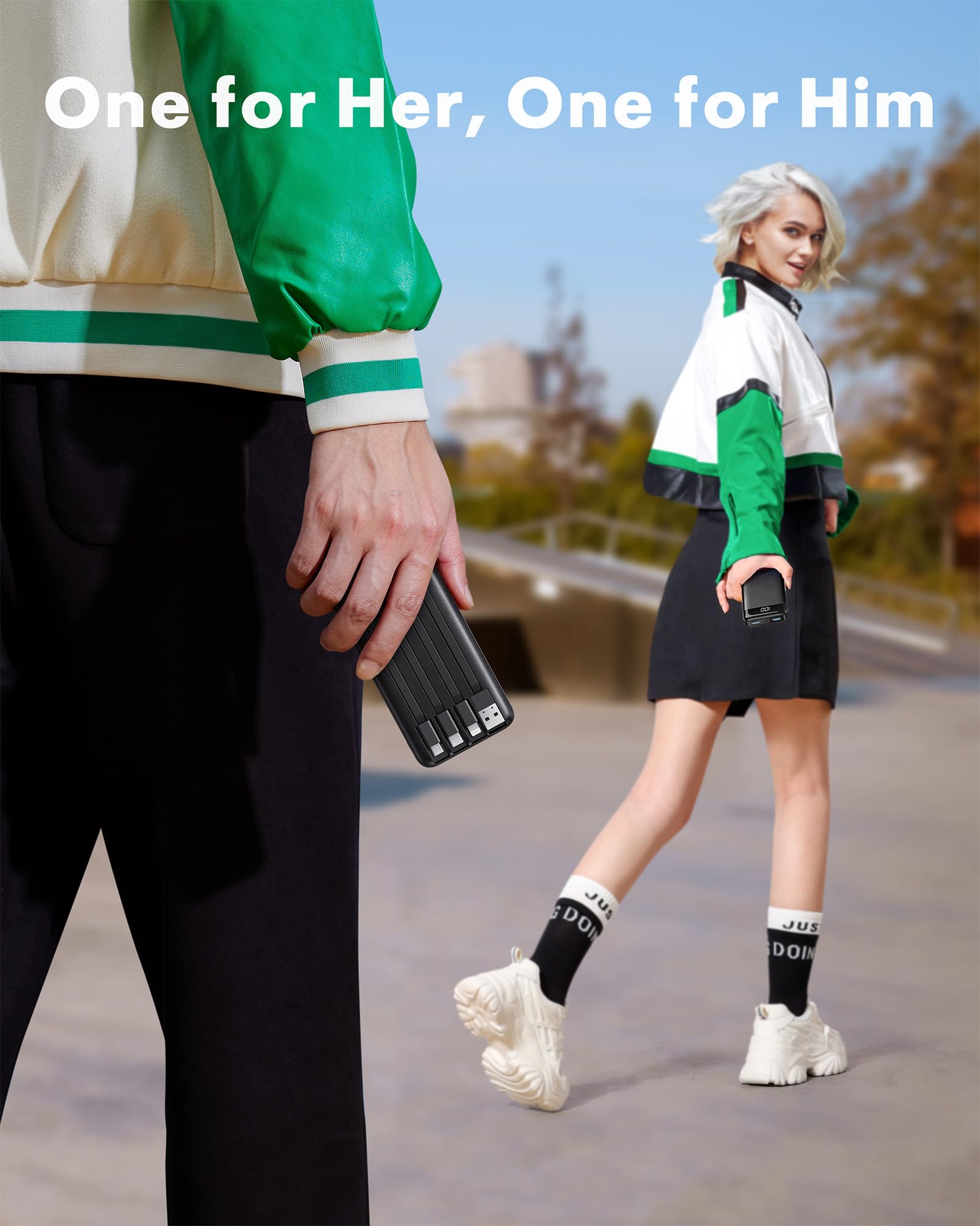 đăPortable charger with built in cablesăSlim portable charger built-in 4 cables included 3 output cables and 1 input cable. Total 3 output cables can charge almost for all types port devices. Such as for iPhone, iPad, for Samsung, for other USB C port phones, tablets, and also for Micro devices. All in one portable charger, you would not need to carry various cables or adapter any more!!!