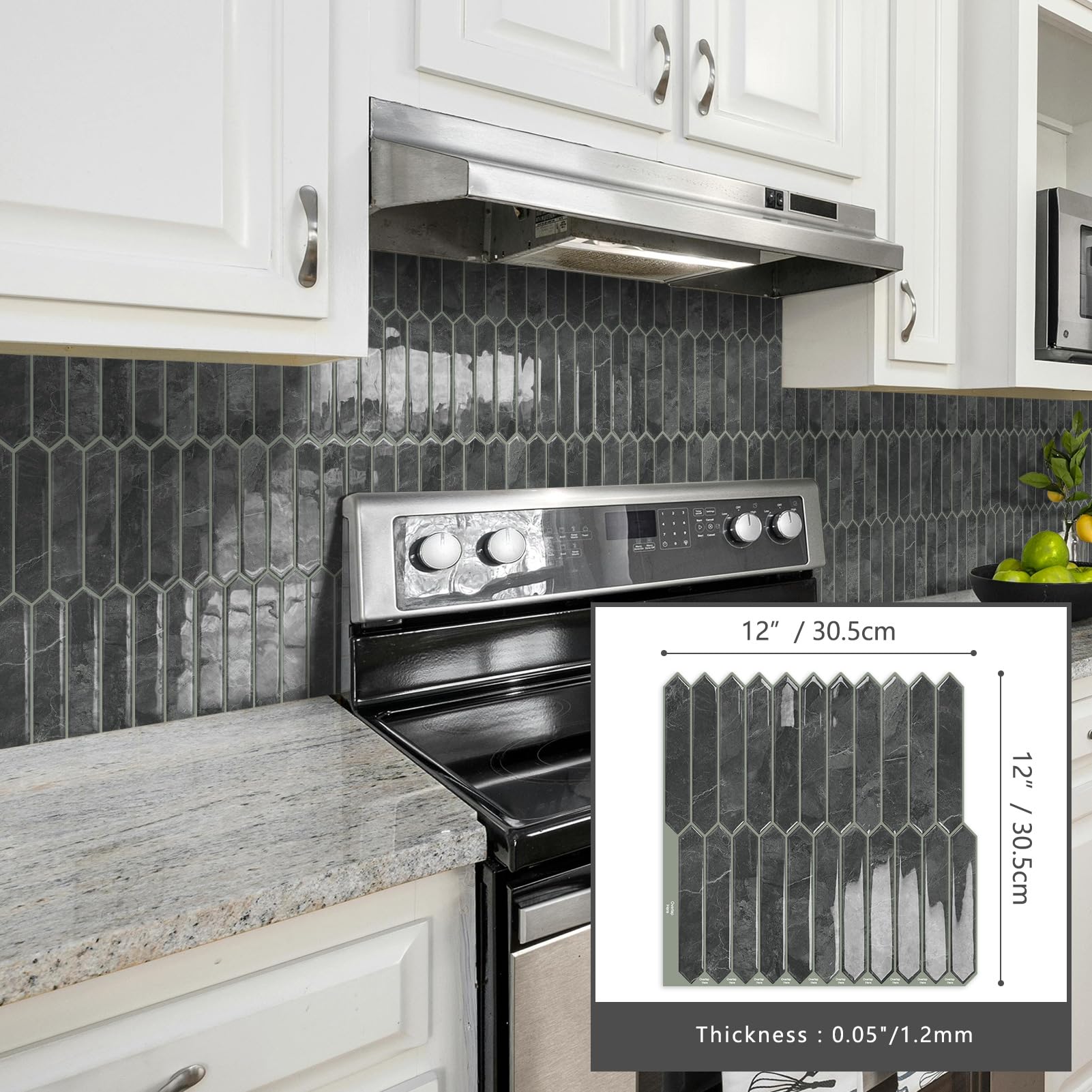 Package Includes:10 sheets of Gray long hexagon vinyl backsplash tiles, with each sheet measures 12""x12"". These tiles boast a modern design, ensuring a stylish upgrade for your space
