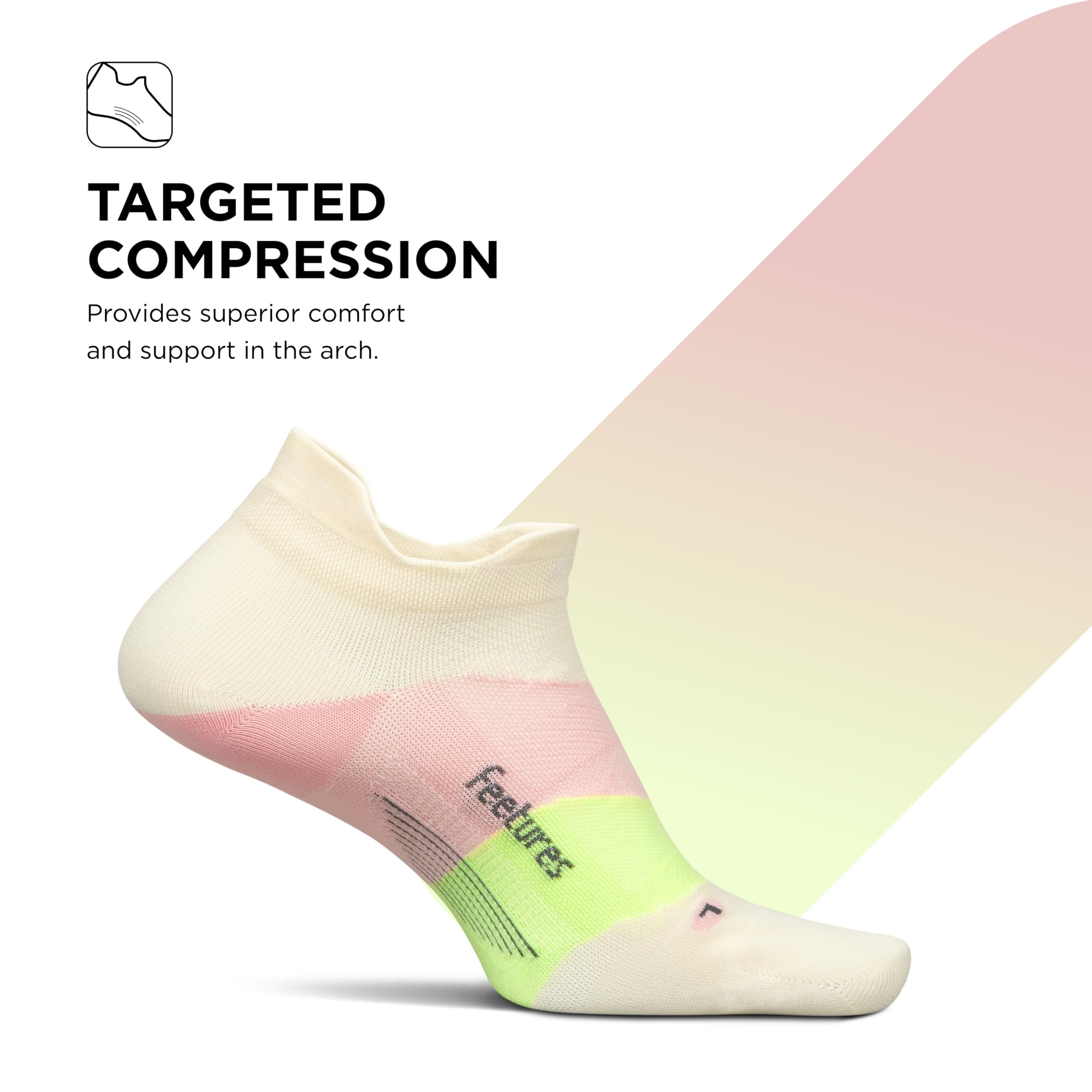 Sports Sock: These Feetures socks are engineered with Targeted Compression and anatomical design that conform to the left and right structure of the foot providing a custom-like fit and reduced risk of blisters