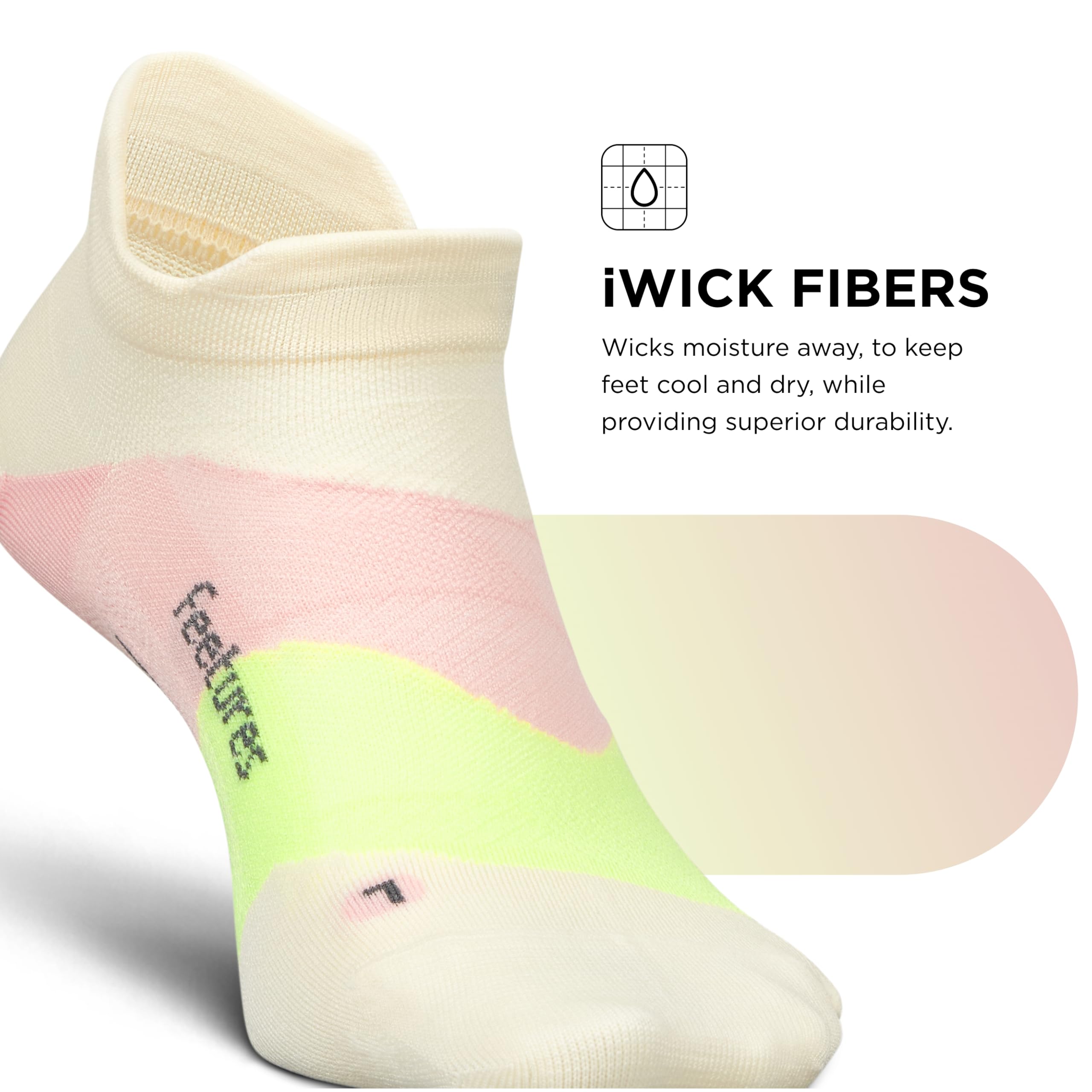 Breathable Socks for Men & Women: These athletic socks are made with iWICK fibers that wick moisture to keep feet cool and dry; mesh construction of these Feetures socks provide ventilation for added breathability; these running socks with seamless toe feature The Perfect Toe