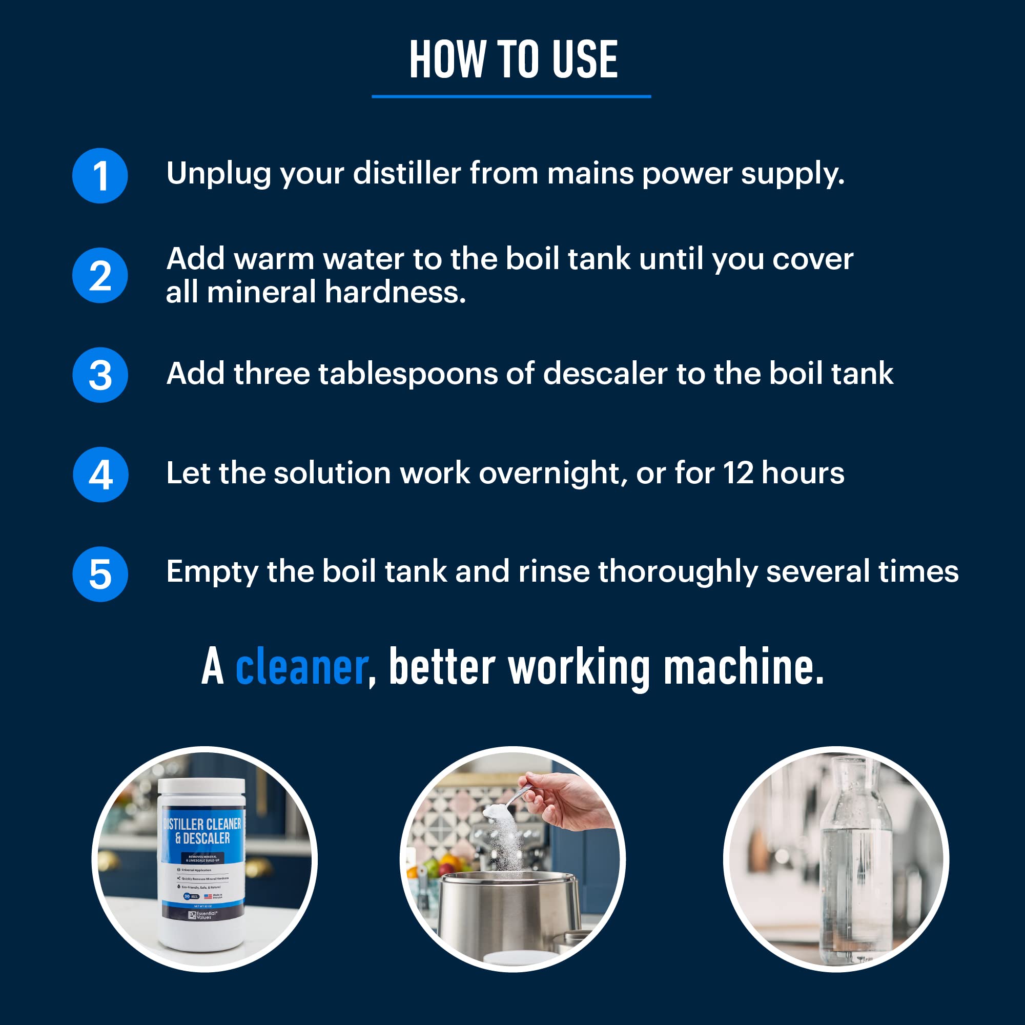 Preferred formula – 100% citric acid is an effective water distiller cleaner. natural formula, engineered to not only clean your water distiller, but to deeply penetrate & descale nasty mineral & limescale build-up. we say no to harsh chemicals to protect you, your family & community.