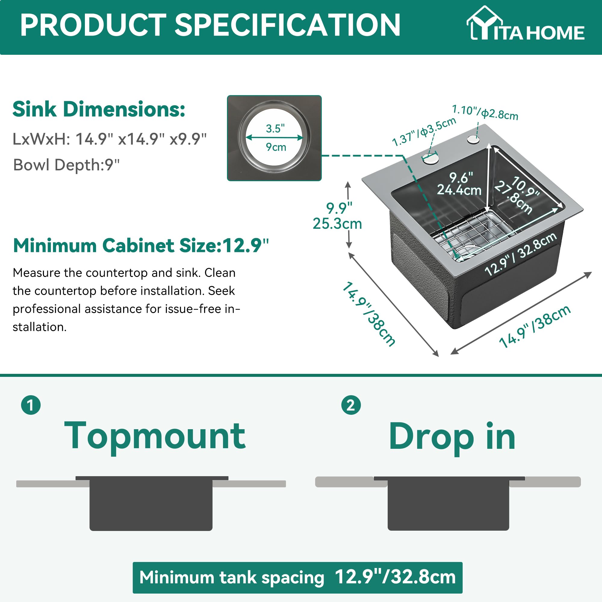 Effortless Cleaning: YITAHOME top mount kitchen sink features a 3mm stainless steel edge that's corrosion-resistant; Its R10 rounded edge design makes it easy to clean, leaving you more time to enjoy your kitchen