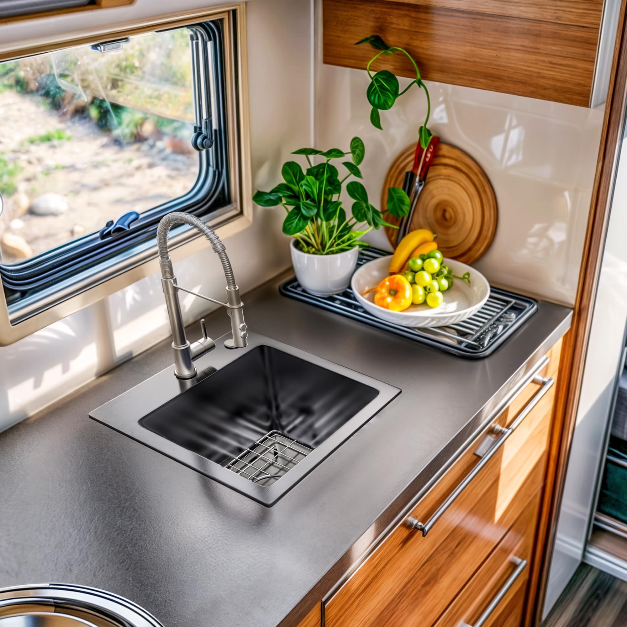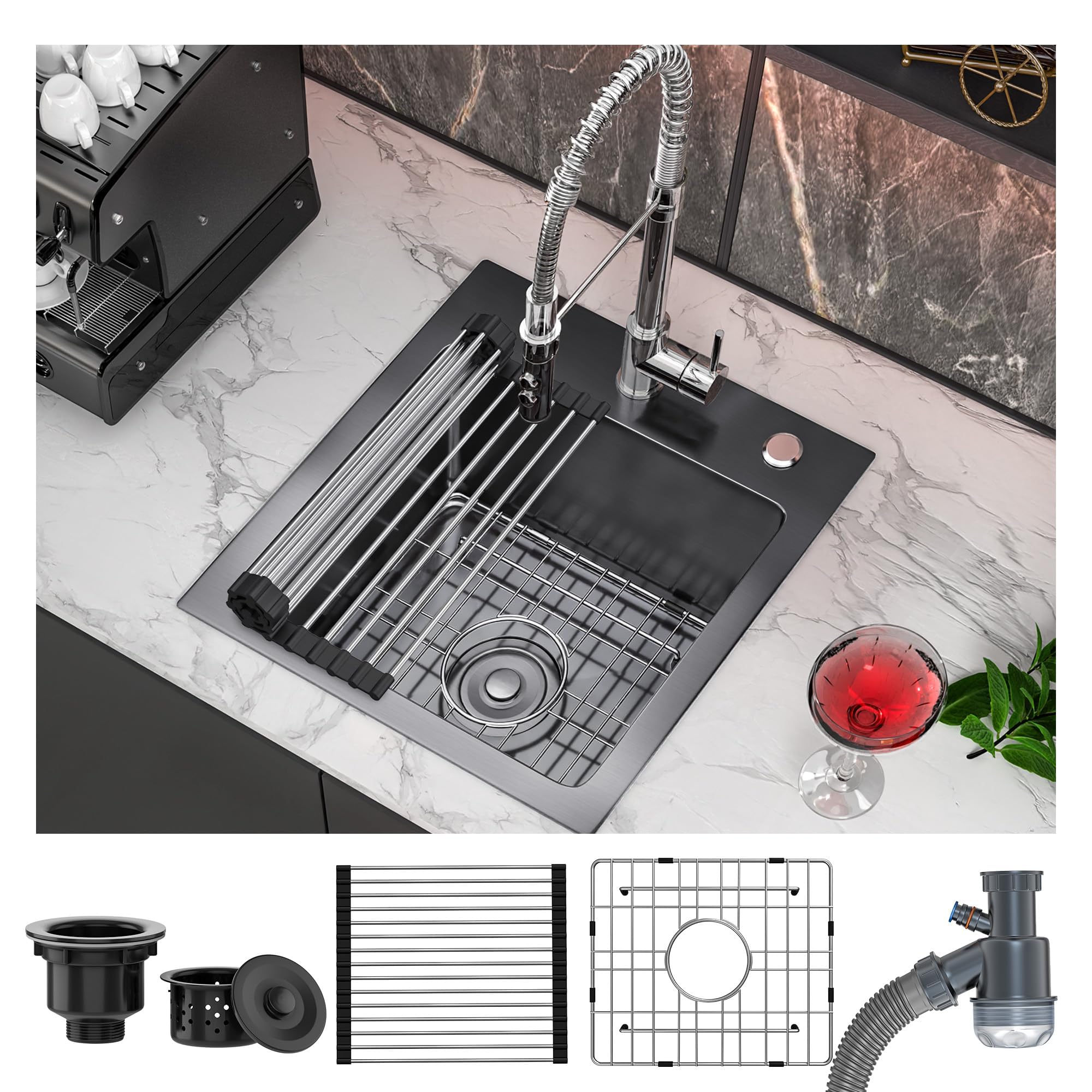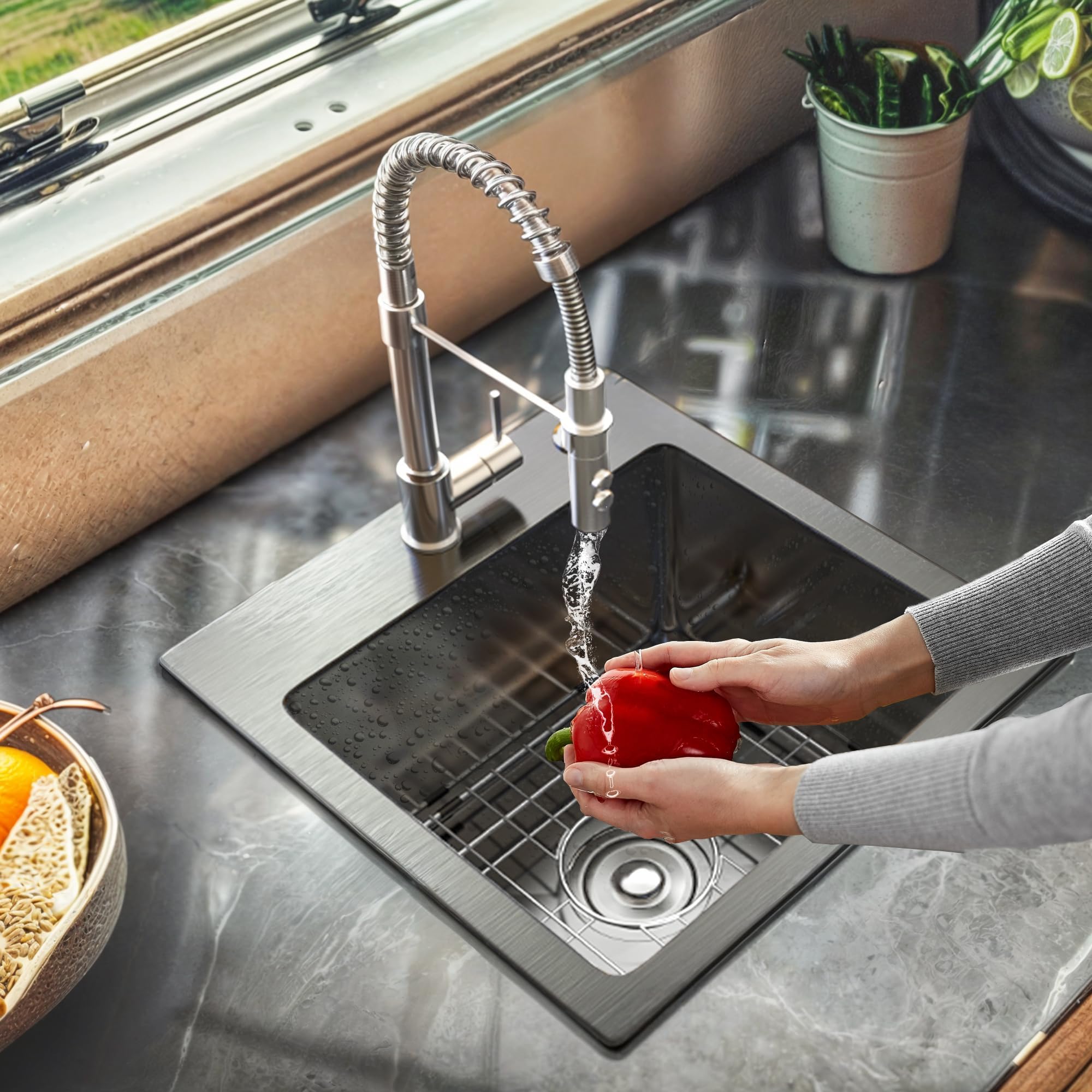 Black Nano Coating: Fashionable black PVD bronze finish of this drop in small kitchen sink workstation is designed for enhanced durability, resistance to corrosion and scratches; Maintain your sink without fingerprints and scratches