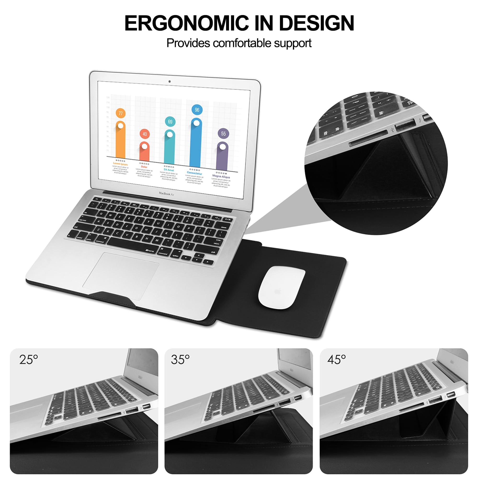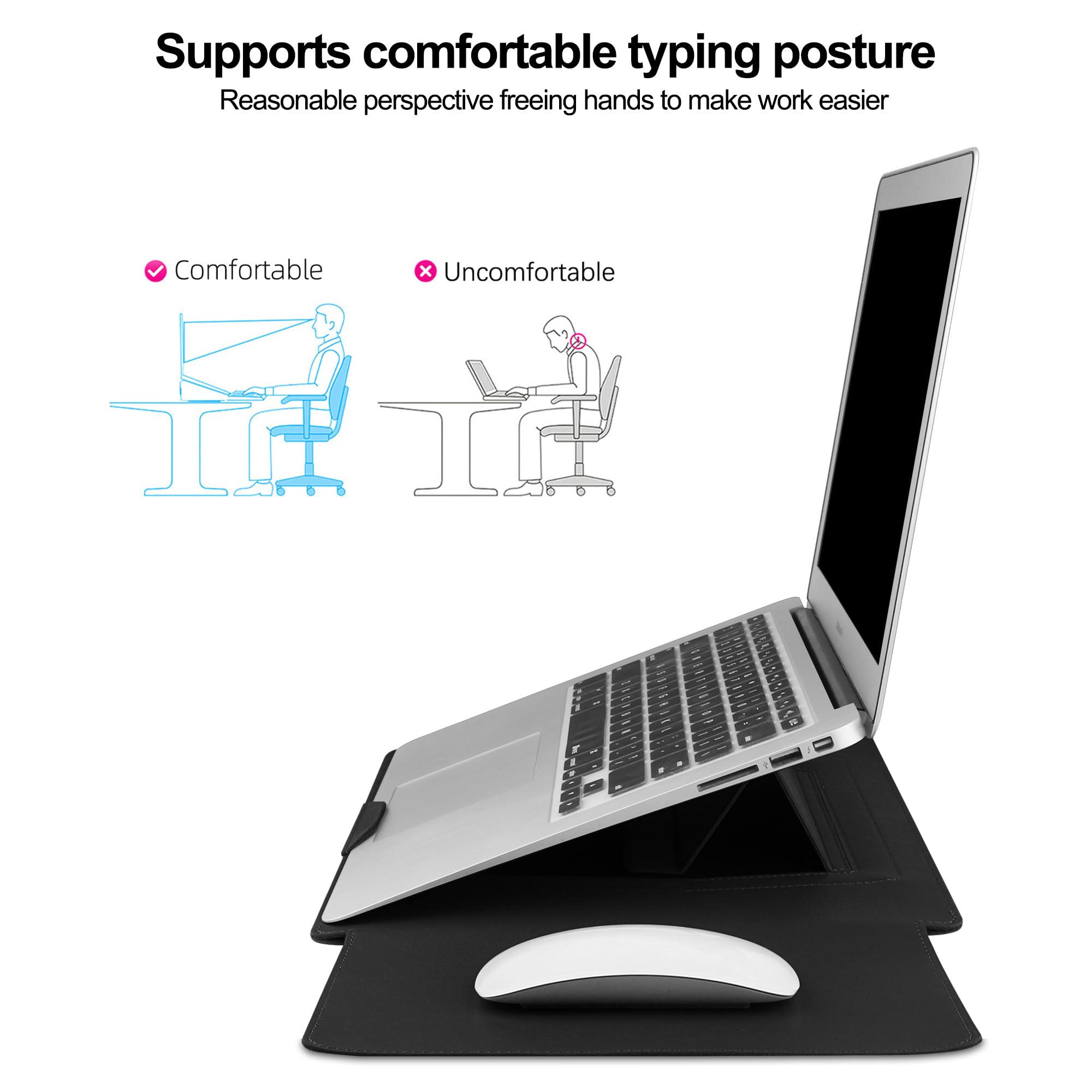 Multi -functional design: portable laptop protective sleeve case, adjustable stand, integrated mouse pad, allow you to work anytime, anywhere.