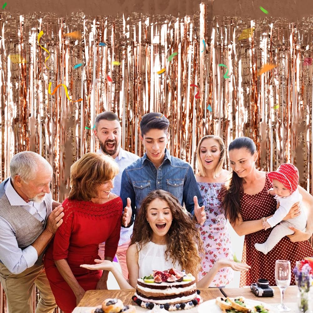 2 Pack Rose Gold Party Streamers - The foil curtain streamers is suitable to decorate all the party theme: birthday party, baby shower, wedding party,kids’ birthday party, outdoor party. You can decorate the walls, window, doors with this rainbow crepe paper to make your party interesting.