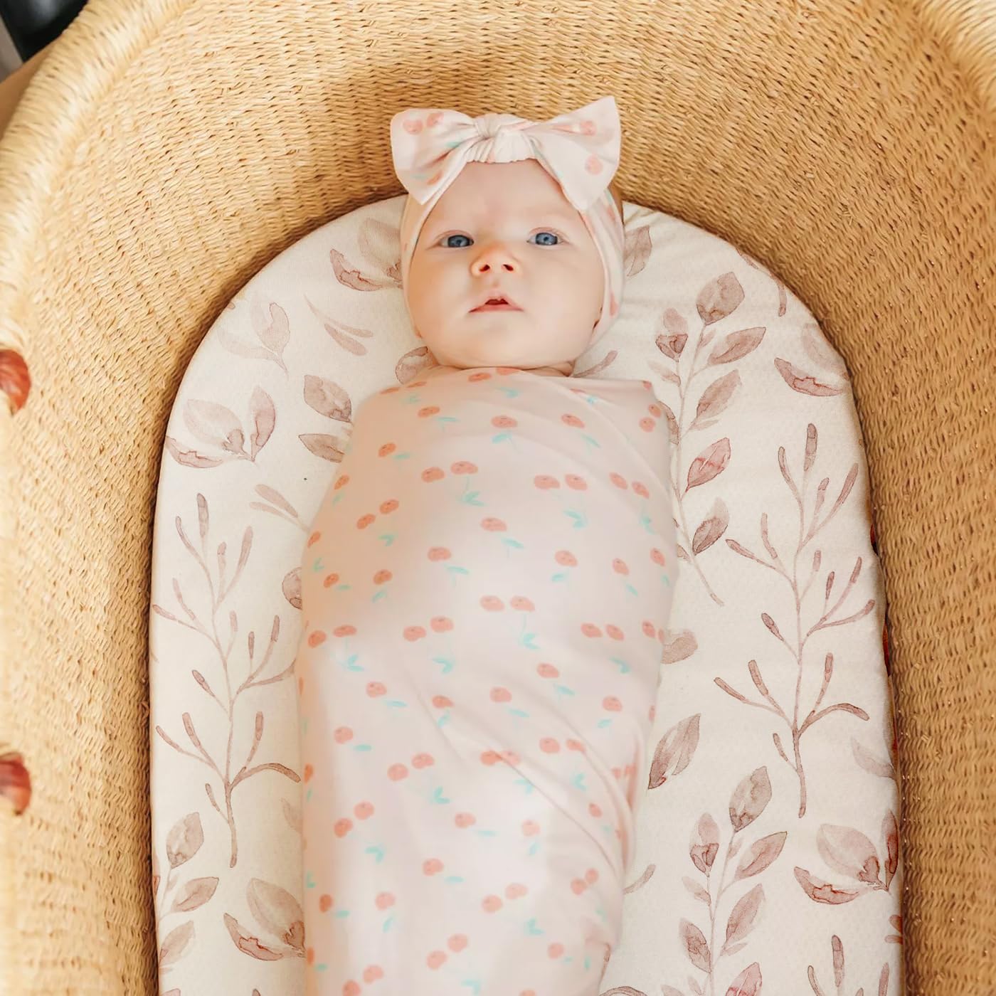 Stretchy Ultra Soft Fitted Bassinet Sheet Set 2 Pack, Universal Fit for Bassinets Baby Cradle Moses Basket Oval Rectangle Mattress Safe and Snug, Beautiful Blush Pink Floral and Cute Animals Print