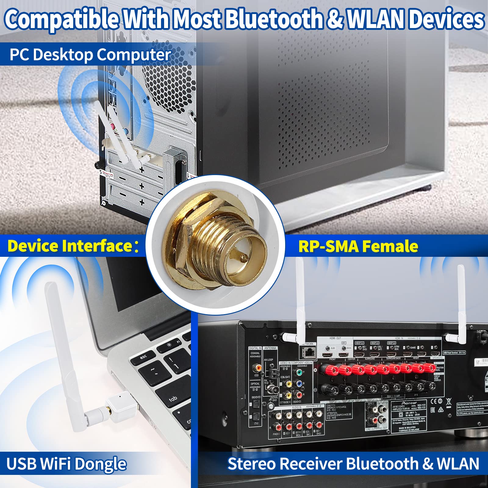 【Please Note】- The connector is (RP-SMA) (Male) -- [a hole in connector center(without pin)], -- please know the difference between (RP-SMA) and (SMA) before purchase