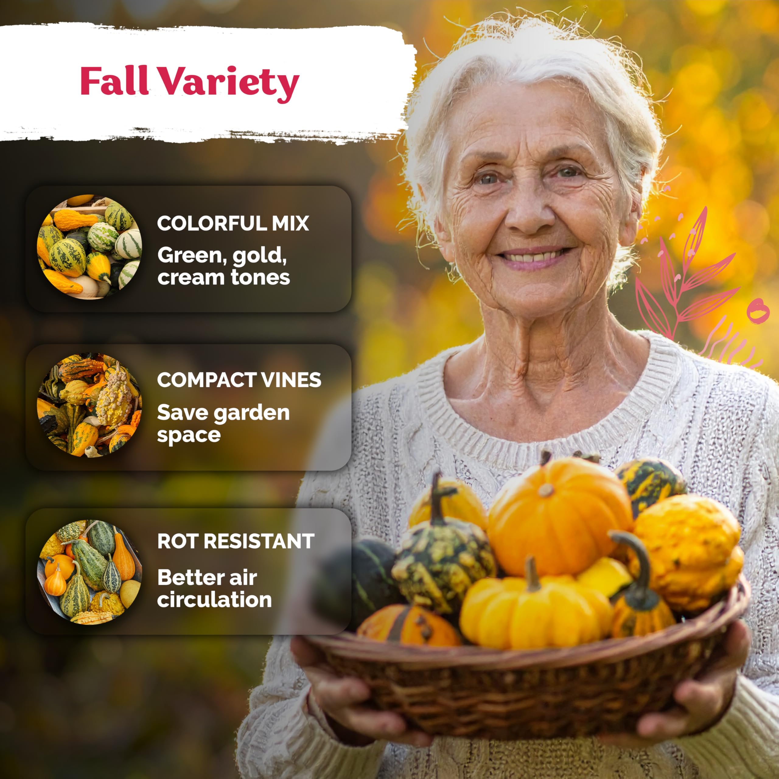 Vibrant Variety: Unique gourd mix yields mini gourds in cream, white, gold, green and yellow hues—ideal small fall decor for centerpieces or dried gourd crafts. Non‑GMO vegetable seeds.